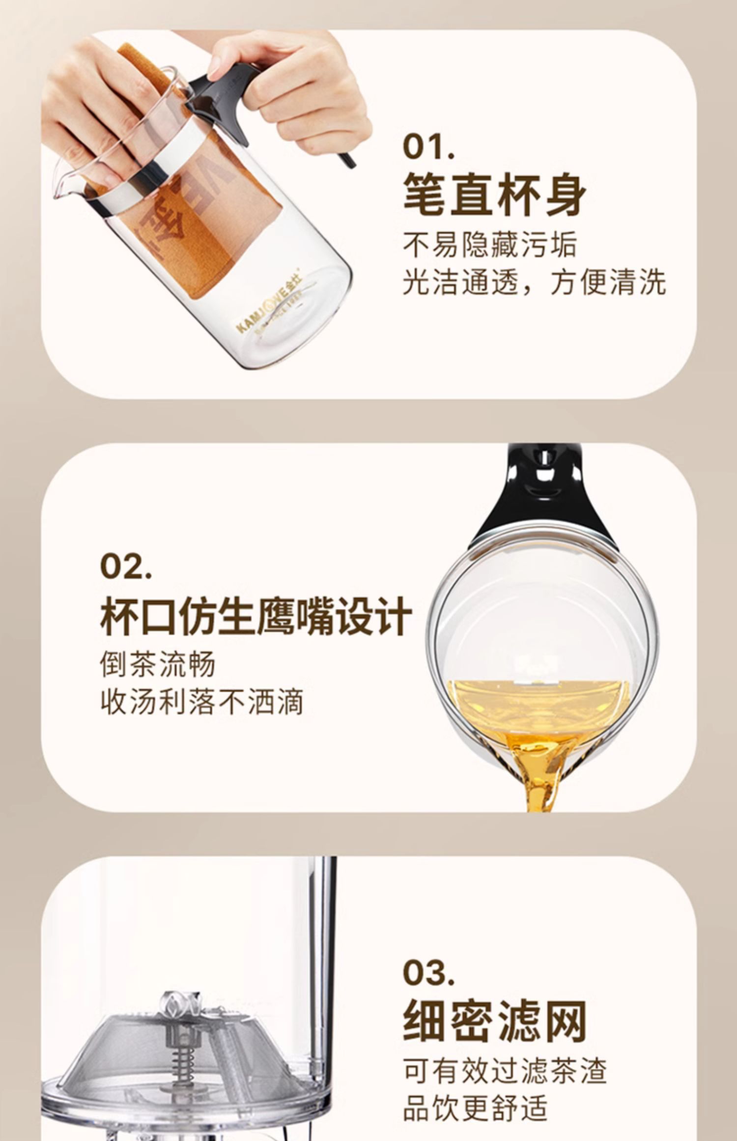吉橙中式无把手玻璃公道杯高硼硅家用功夫茶品茗杯加厚耐高温茶具