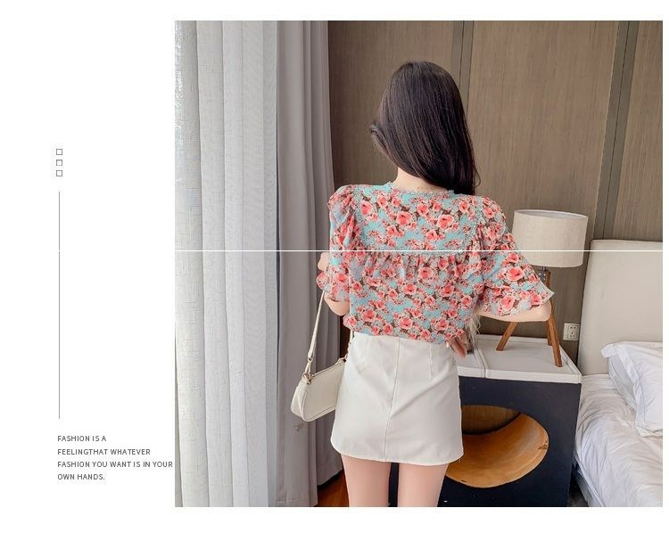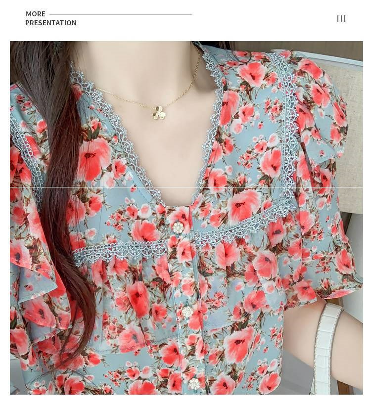 女碎花反领上衣6687