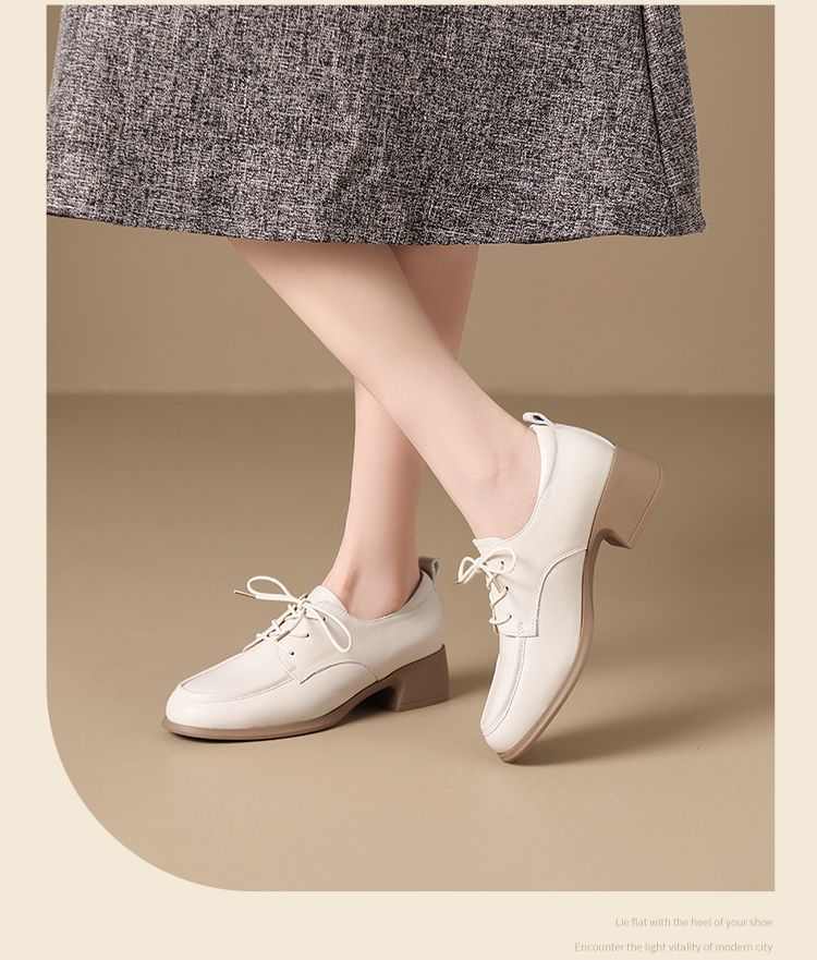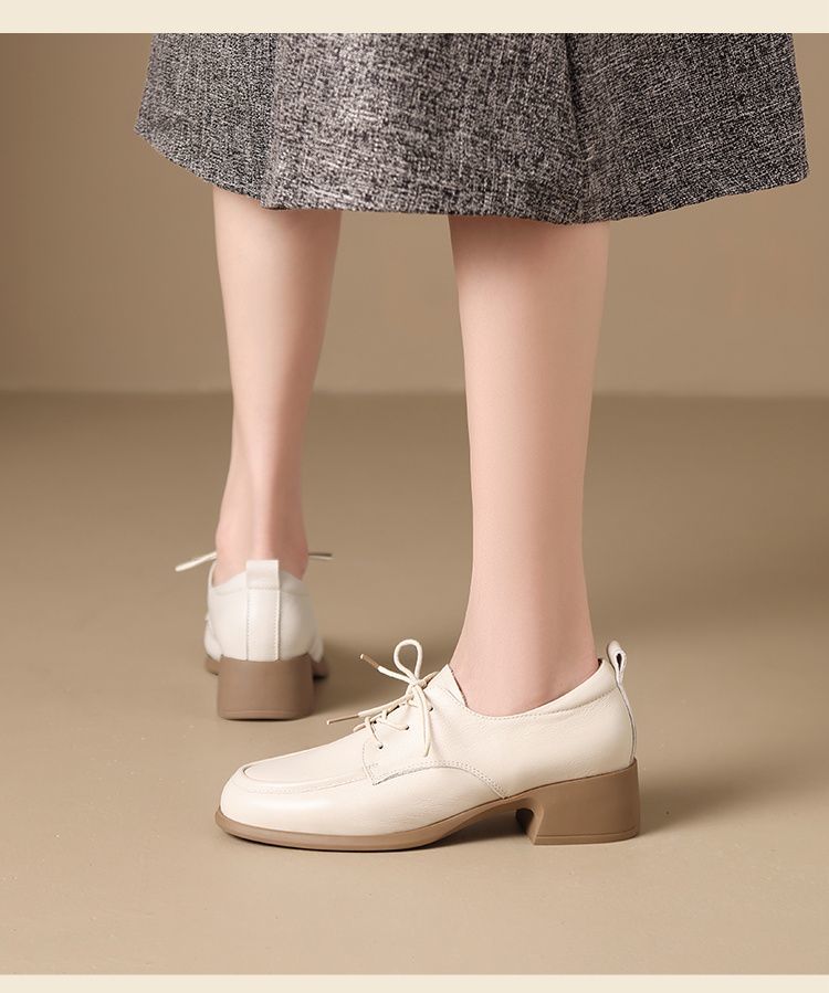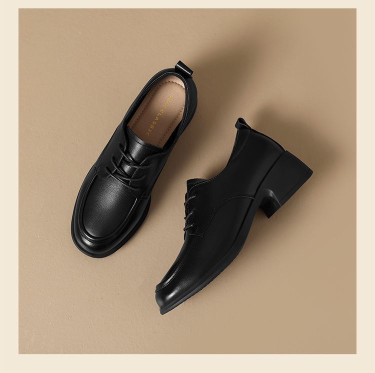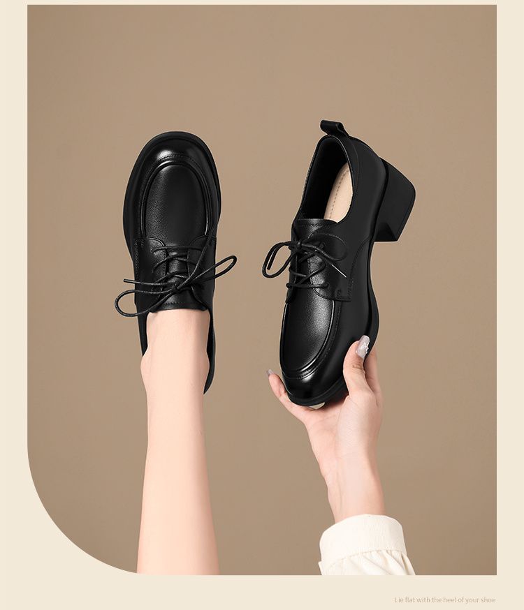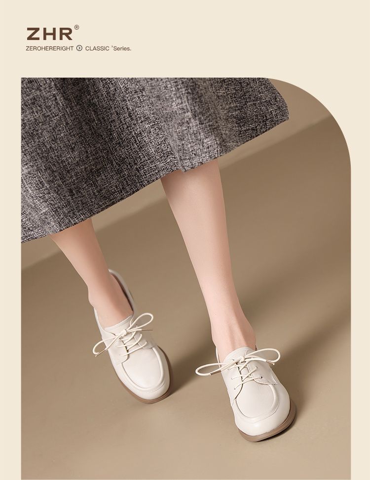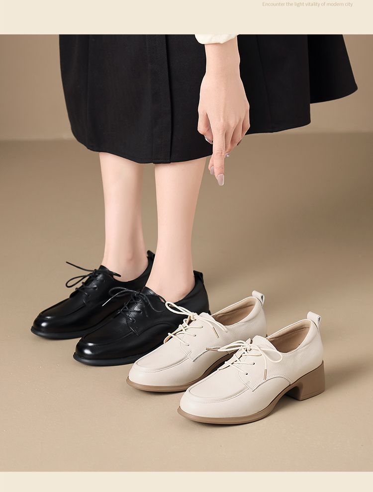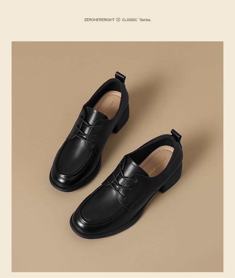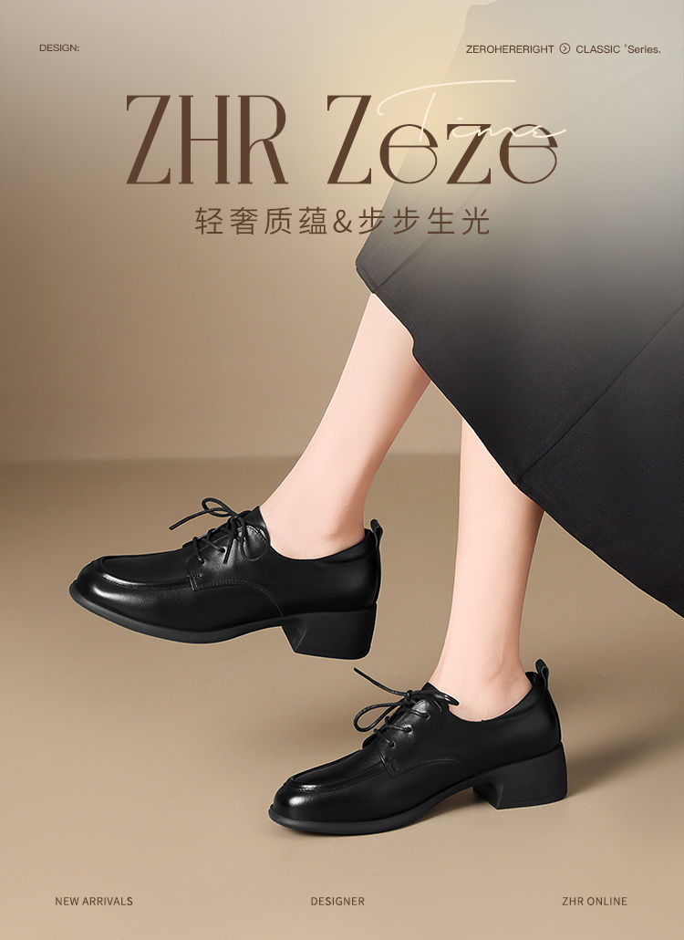 ZHR则则头层牛皮真皮粗跟高跟单鞋乐福鞋2025新款百搭时尚小皮鞋