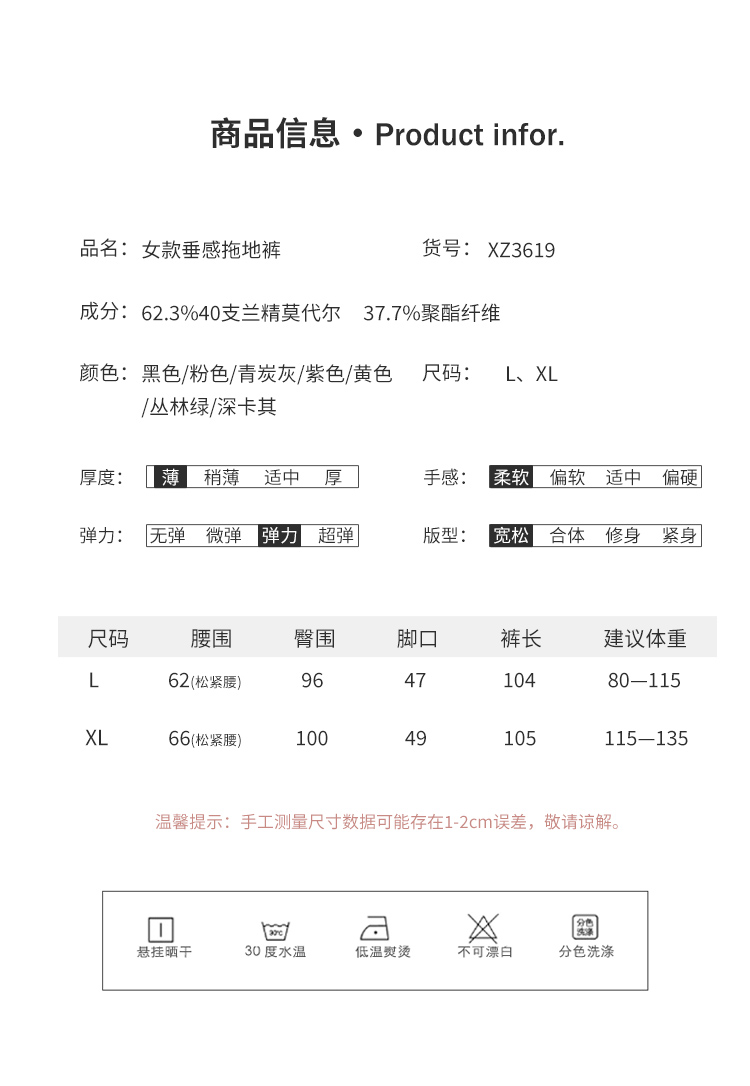 皇家丽美百搭舒适透气亲肤阔腿拖地休闲裤XZ3619