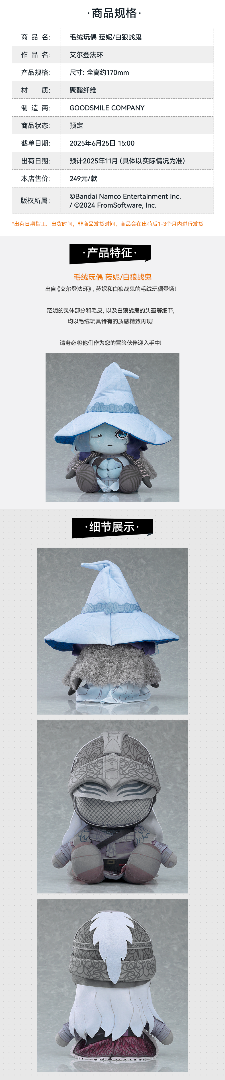 【GSC现货】毛绒玩偶 菈妮 /白狼战鬼 艾尔登法环