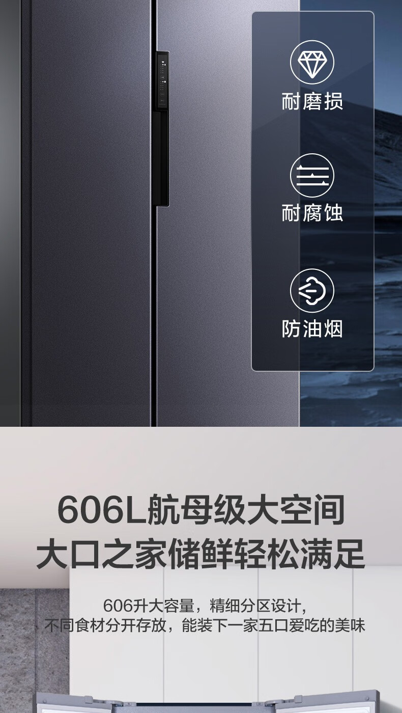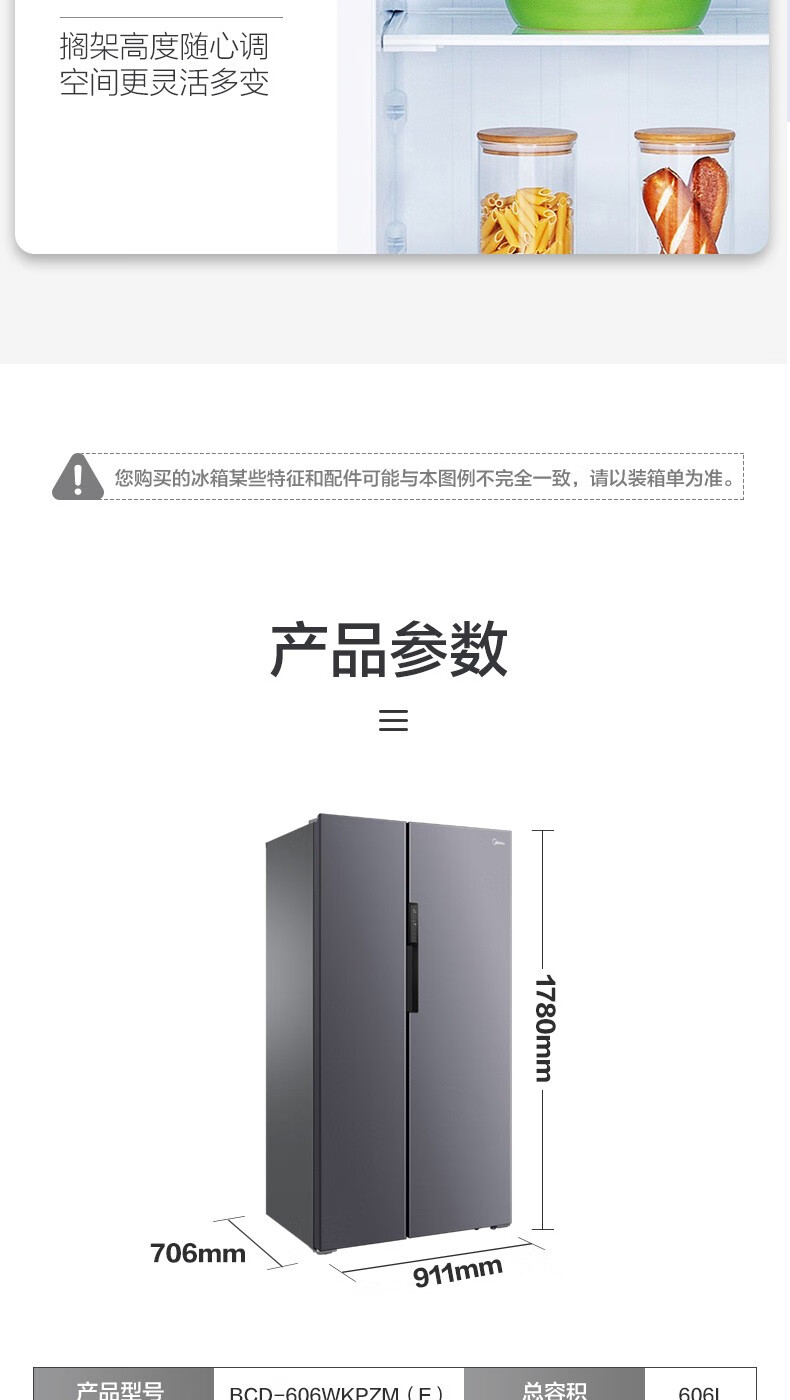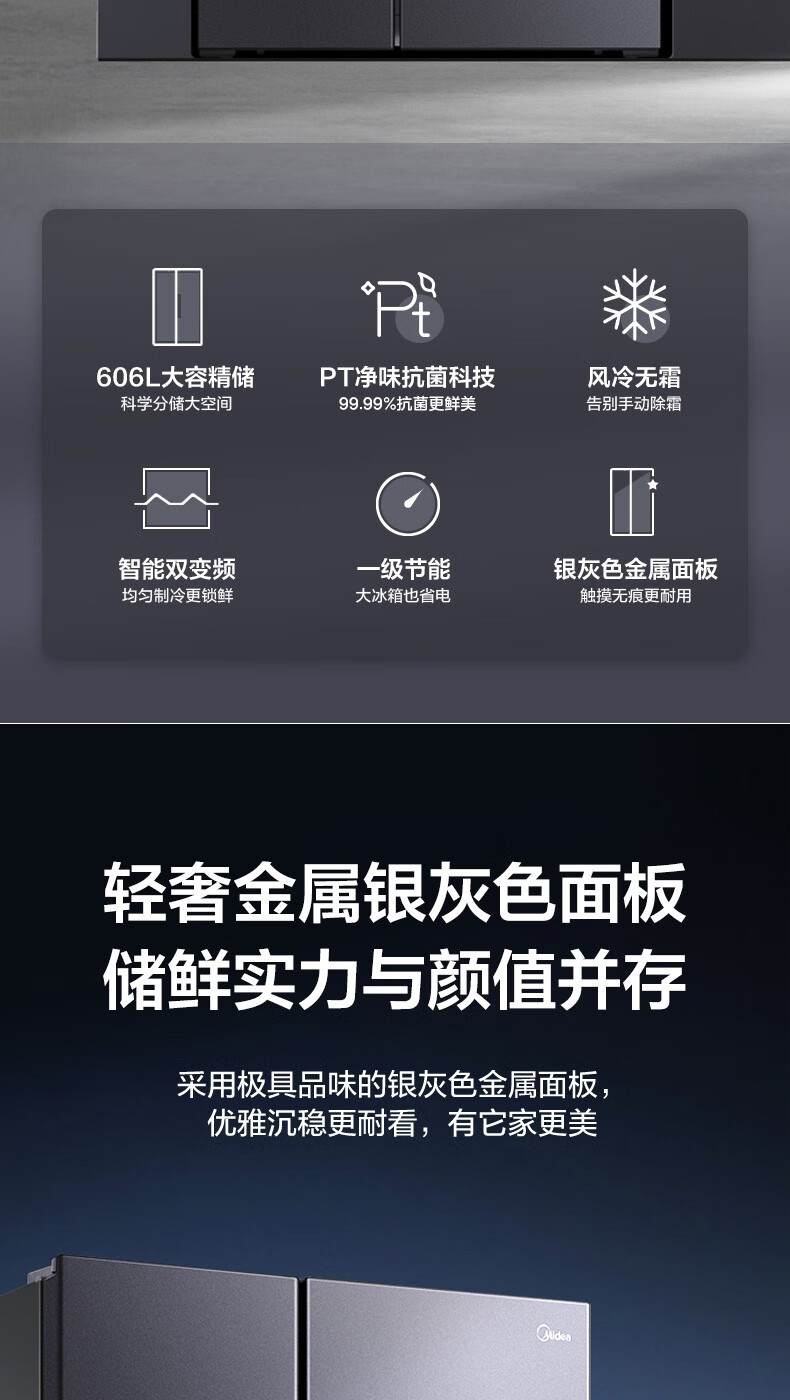 美的 BCD-606WKPZM(E) 606升 双开门变频风冷一级囤货独立风冷大容积电冰箱