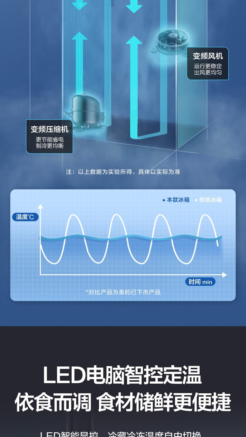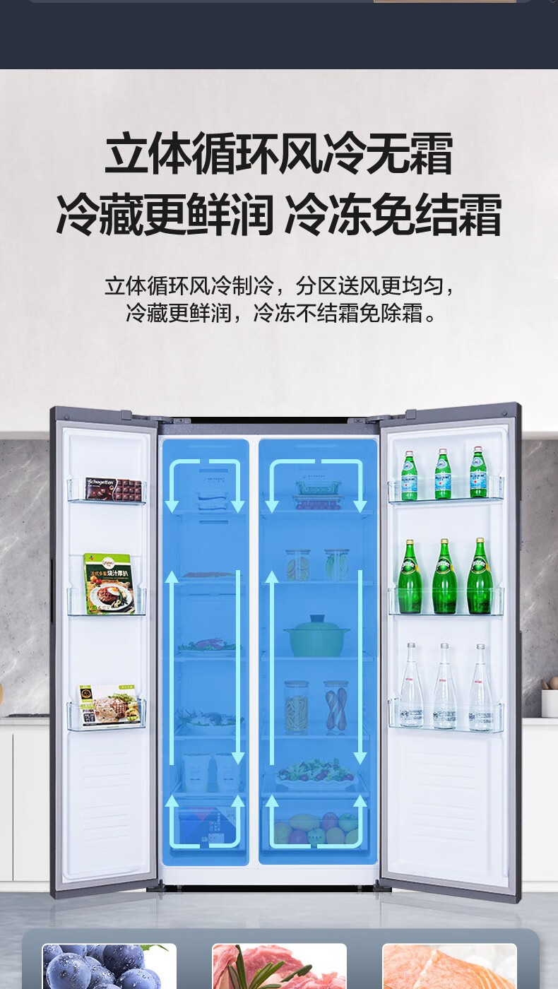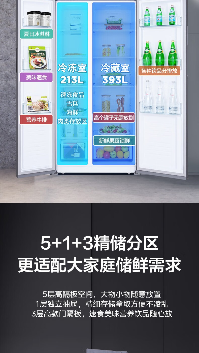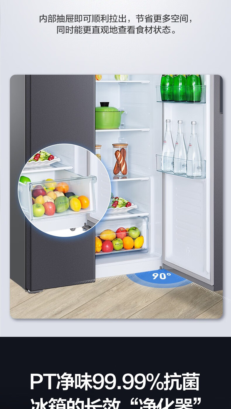 美的 BCD-606WKPZM(E) 606升 双开门变频风冷一级囤货独立风冷大容积电冰箱
