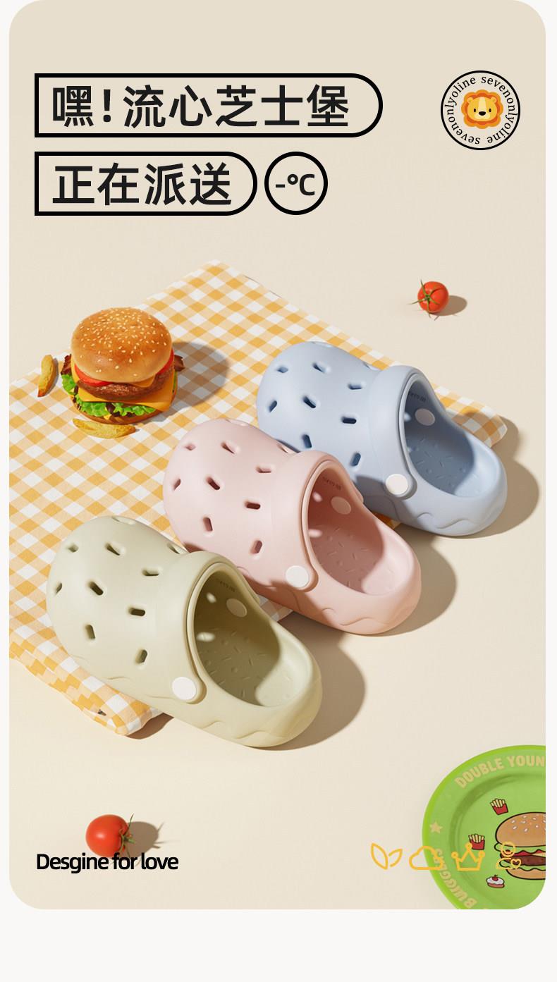儿童汉堡拖鞋夏季可爱沙滩包头洞洞鞋居家男童女童室内凉拖鞋夏季180-220★娃娃优选