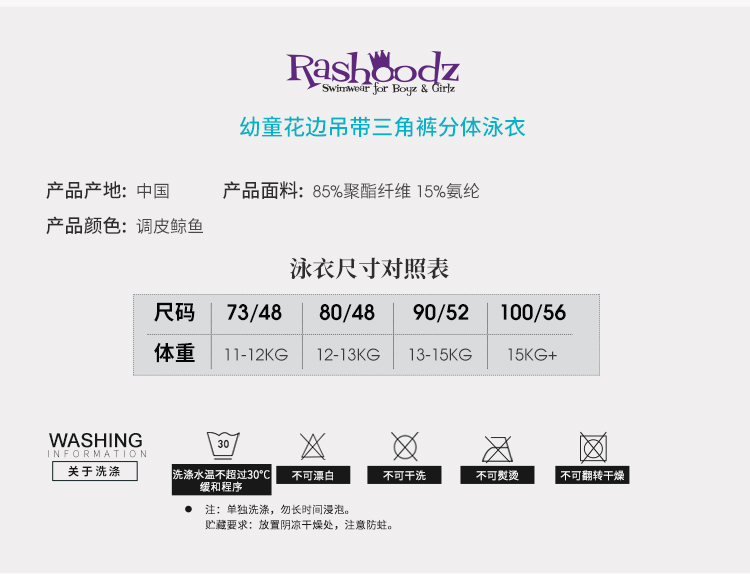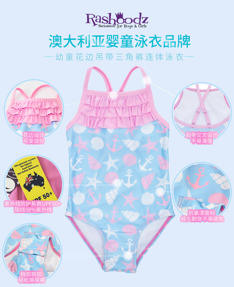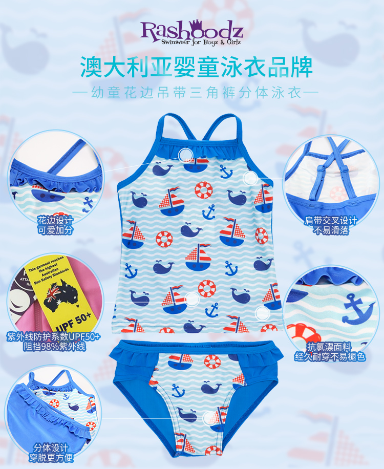 澳大利亚Rashoodz儿童花边吊带三角裤分体游泳衣连体泳衣沙滩衣