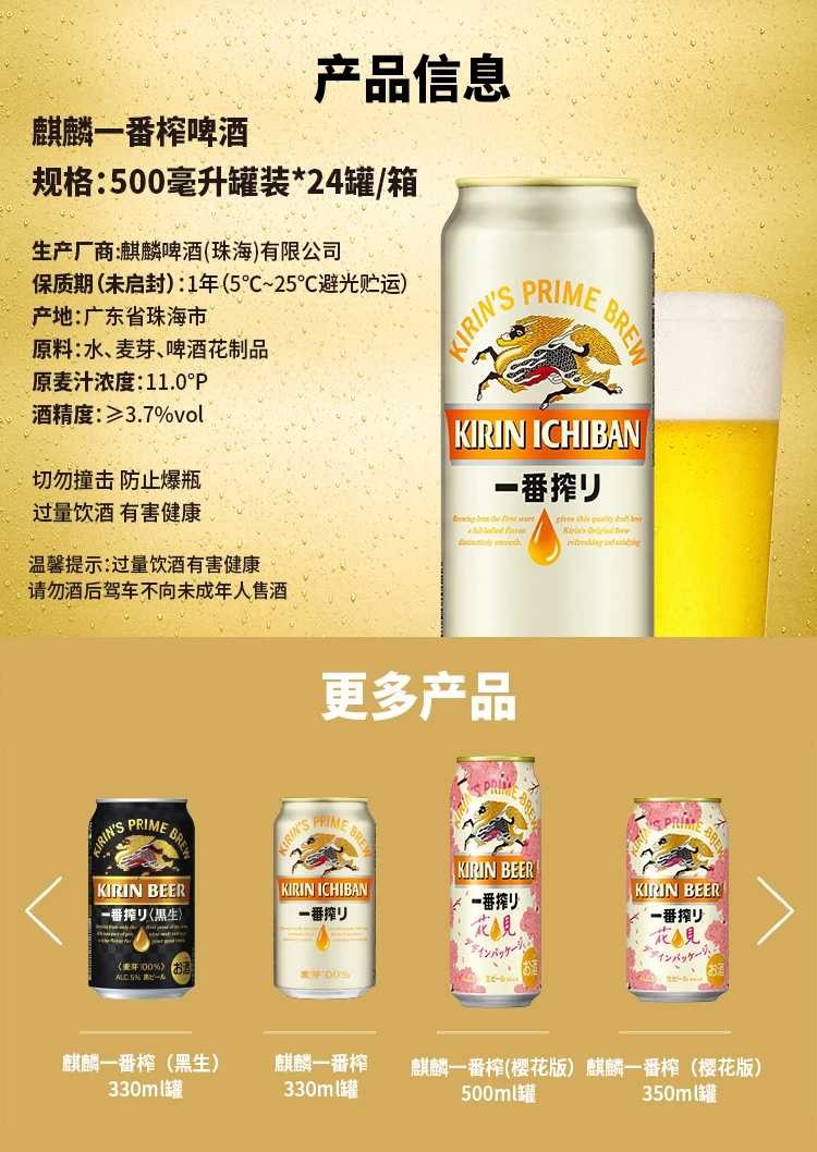 【整箱】麒麟一番榨啤酒 24听*500ml 4.5%vol