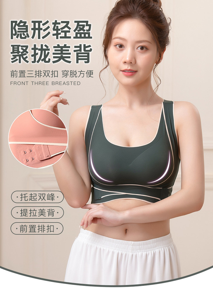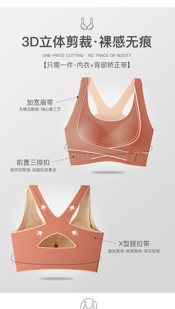 2件特惠装!【一件=内衣+背部矫正带】 无痕开肩矫正内衣 3D立体剪裁,加宽肩带设计,无痕无勒感,前置三排扣,矫正驼背,收拢赘肉