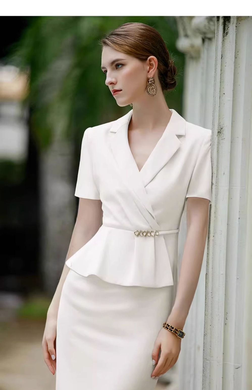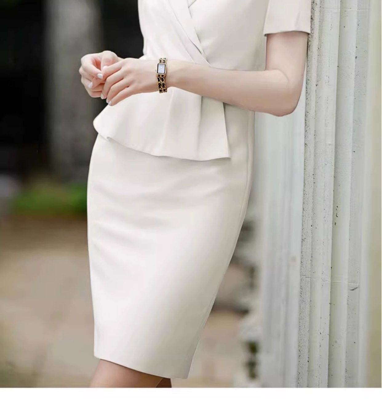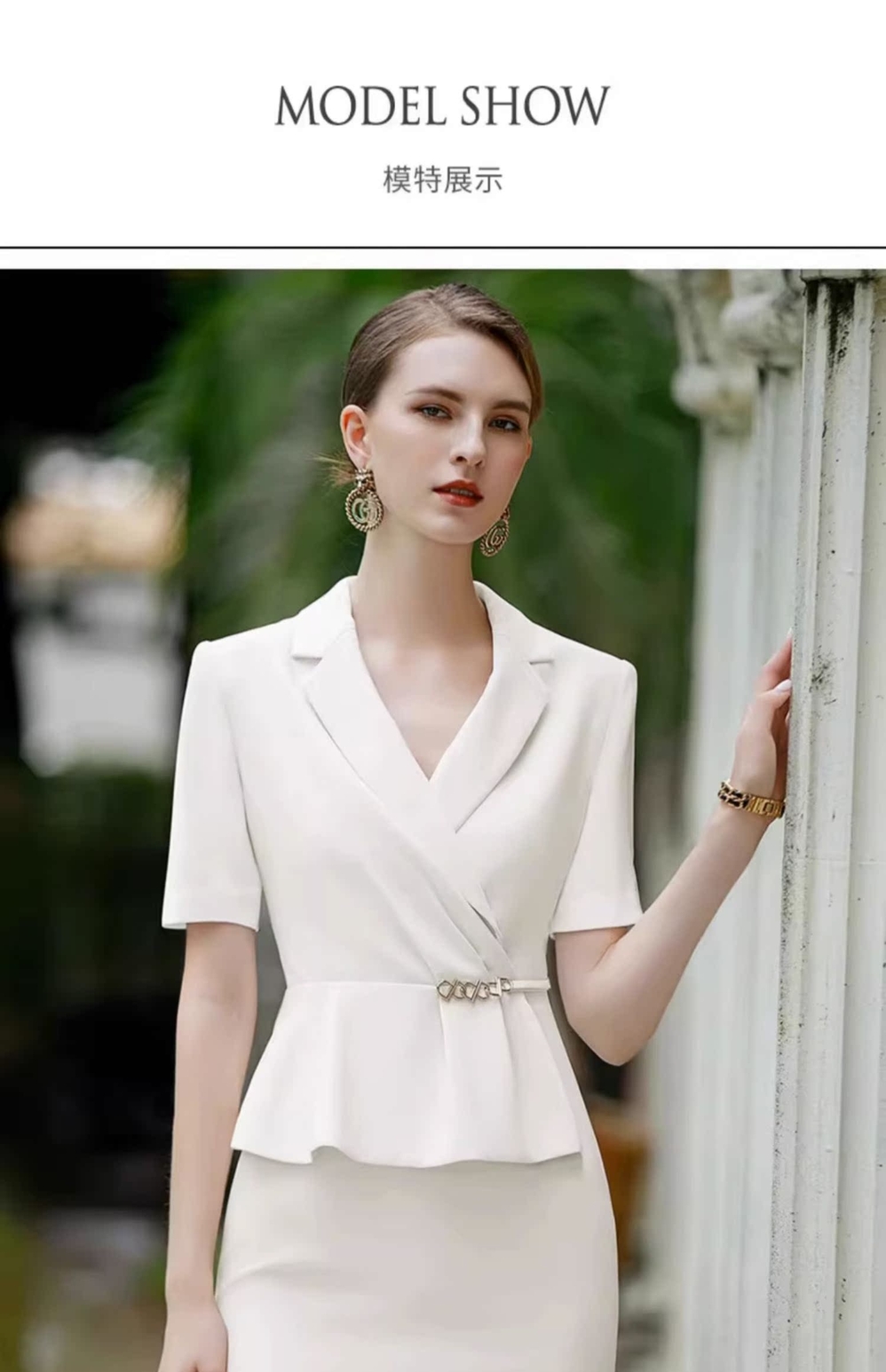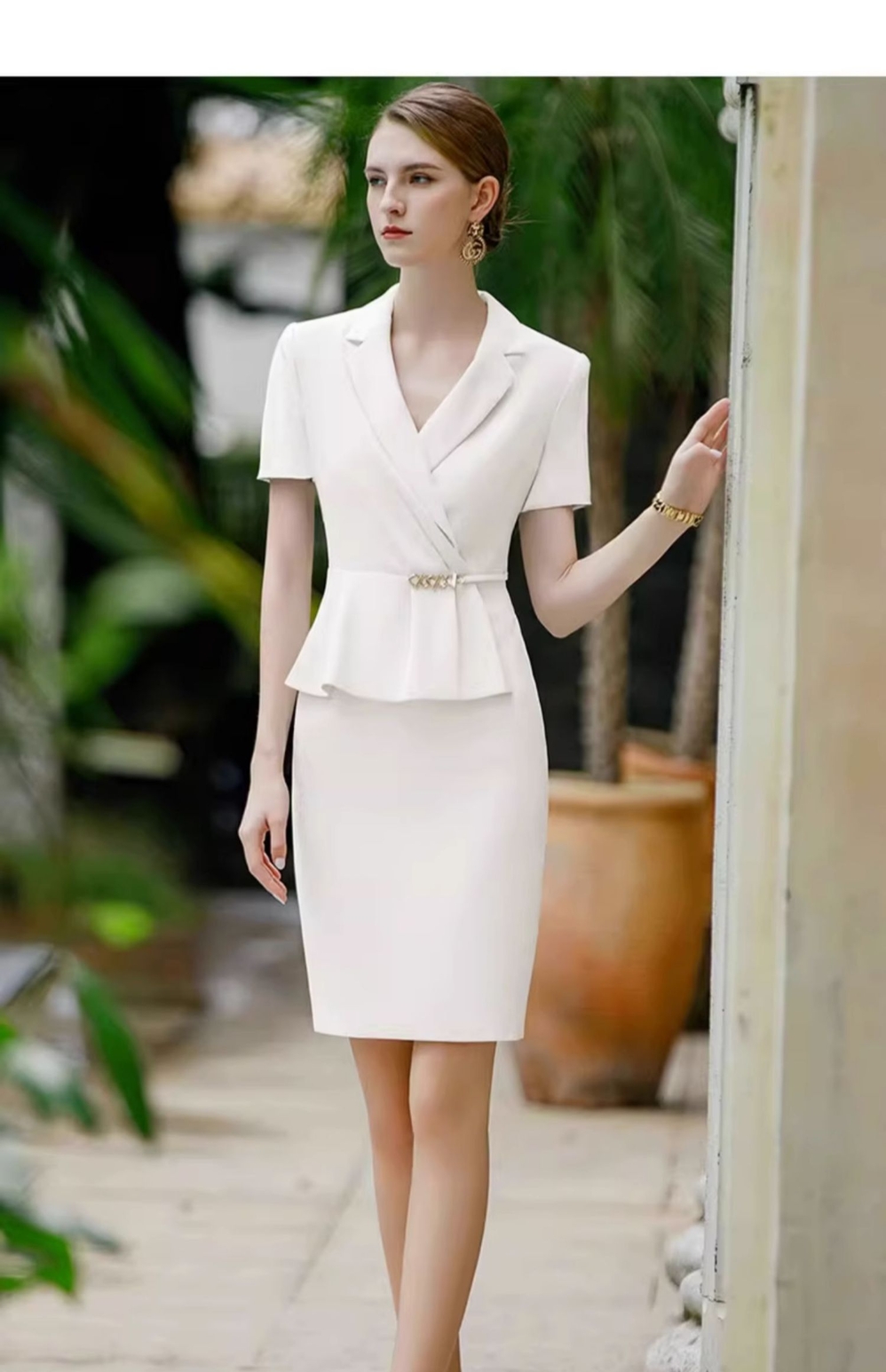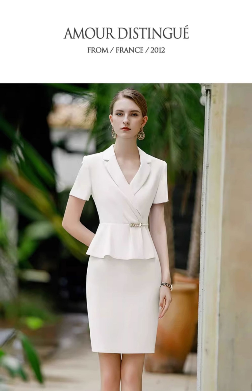 IWY/高端白色连衣裙夏短袖名媛工装主持人正装美容院工作服职业装Q944