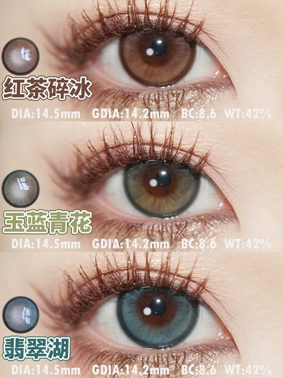 Jellydoll 月抛 玉蓝青花/红茶碎冰/翡翠湖 14.5mm 青褐棕色 拍下即为一副两片 有日抛