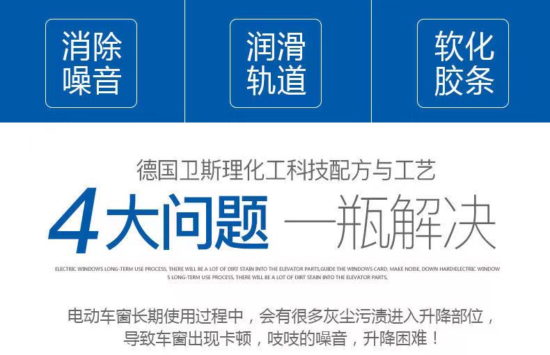 卫斯理电动车窗润滑剂车门玻璃升降异响消除天窗轨道降噪皮带防锈