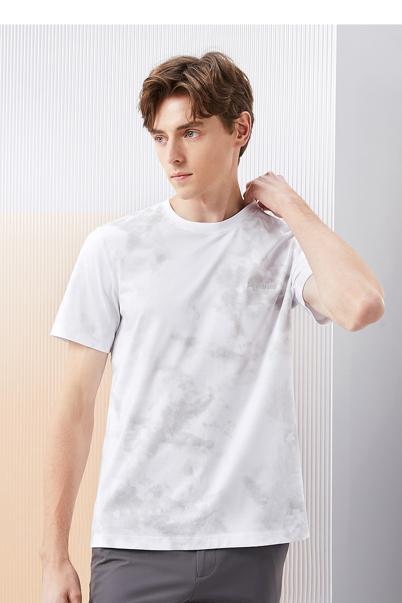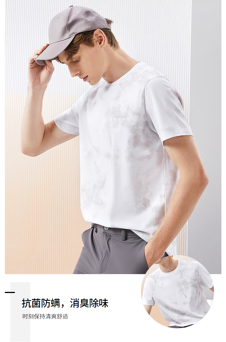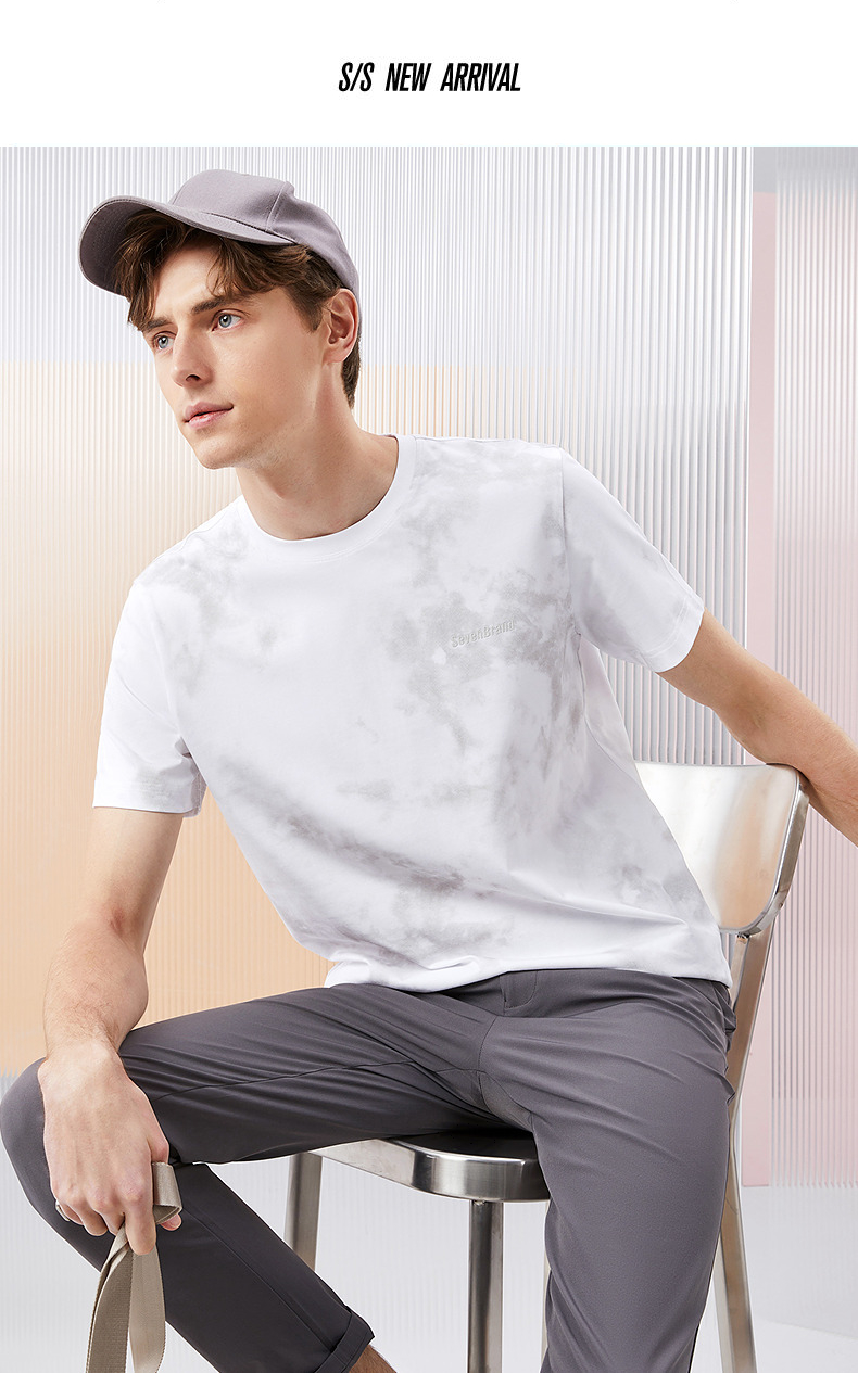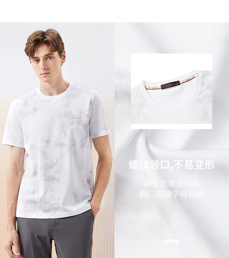 【5A抗菌2A防螨】柒牌男士短袖T恤夏季新款时尚潮流渐变印花上衣126T71490