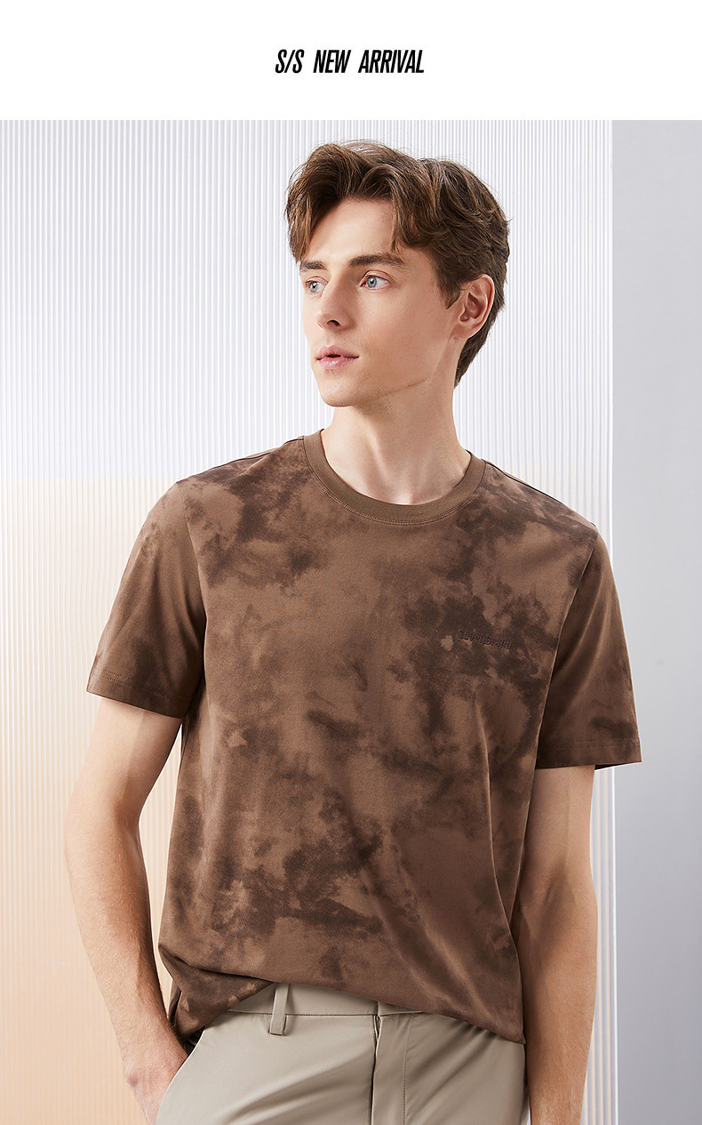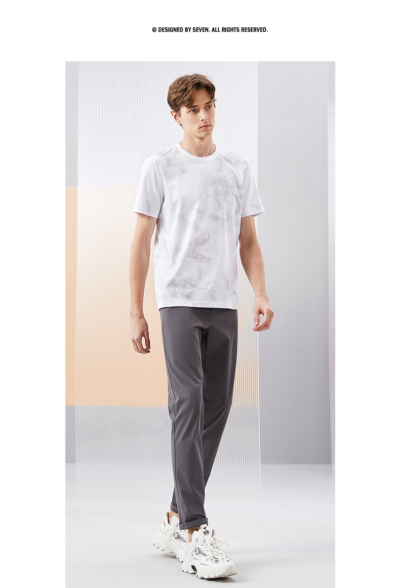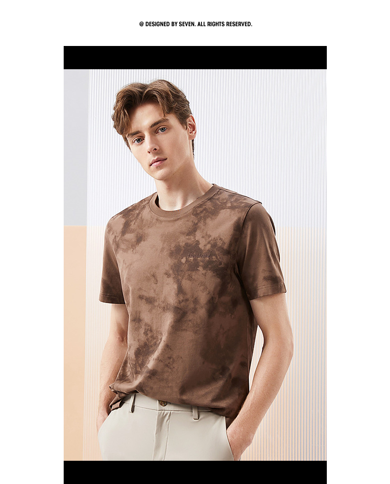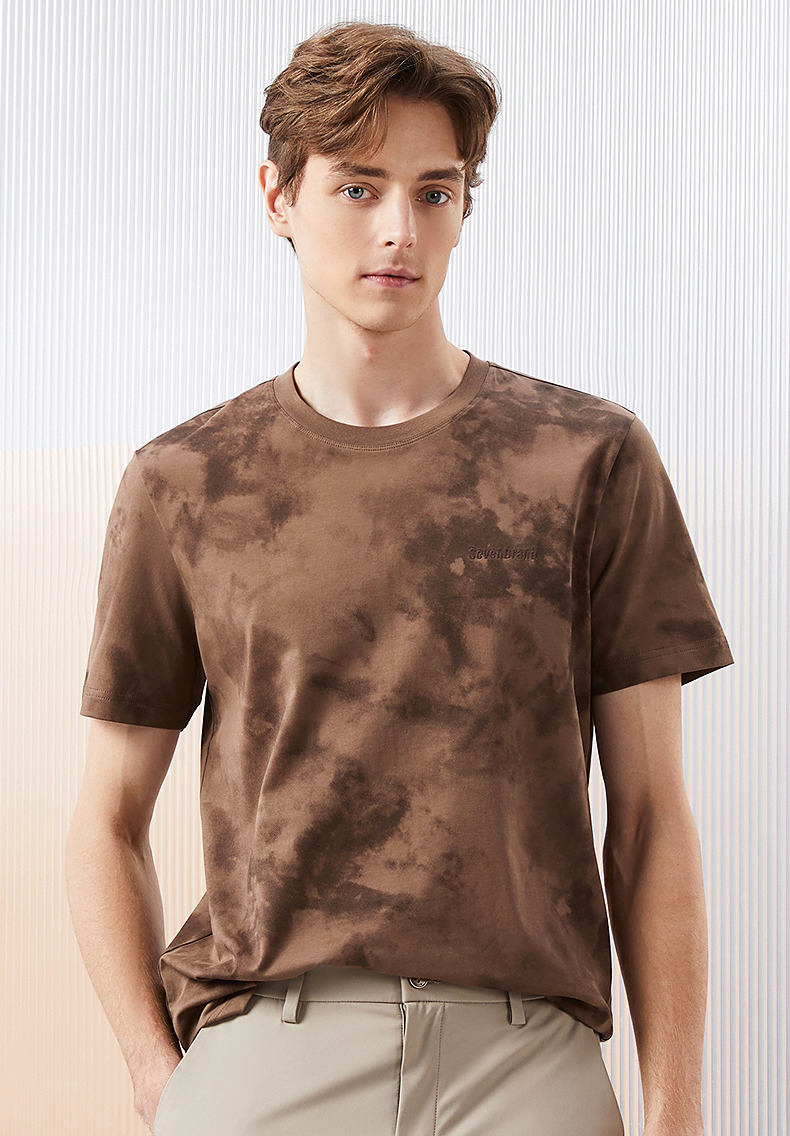 【5A抗菌2A防螨】柒牌男士短袖T恤夏季新款时尚潮流渐变印花上衣126T71490