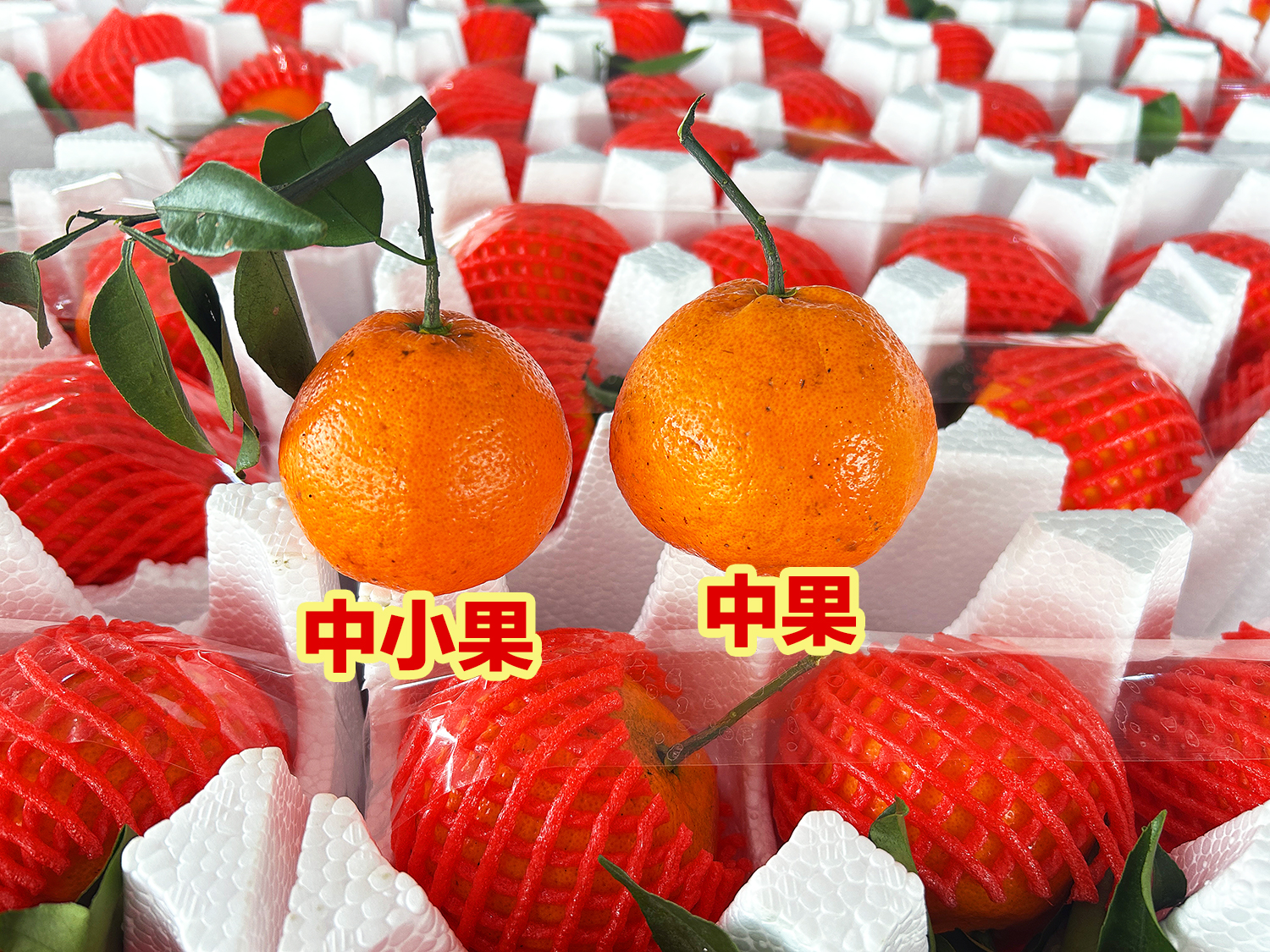 【产品规格】明日见柑橘:4.5斤中果(约13-16枚左右),4.5斤大果(约8-12枚左右),8斤中果(约20-24枚左右),8斤大果(约13-18枚左右),4斤中小果(约16枚以内),7.5斤中小果(约30枚以内)。