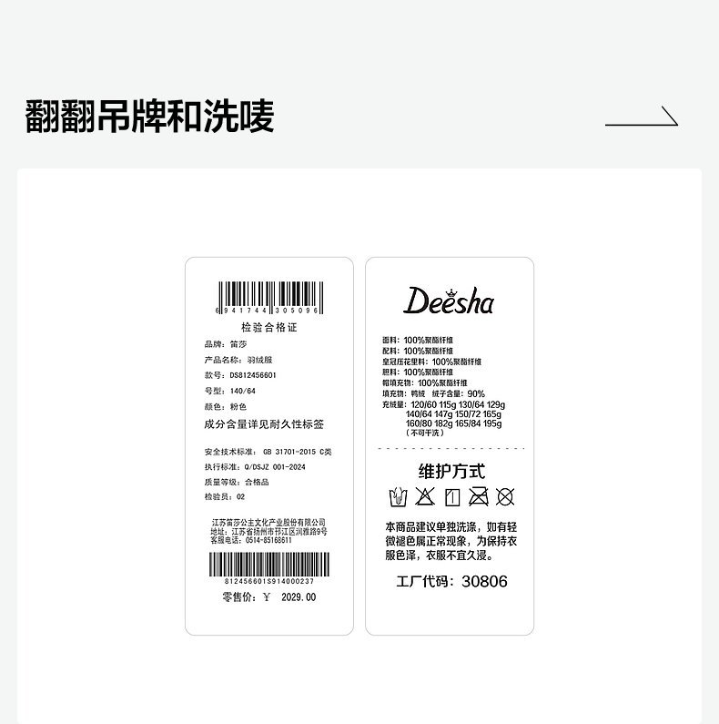 笛莎女童羽绒服2024冬季新款宝宝连帽羽绒服