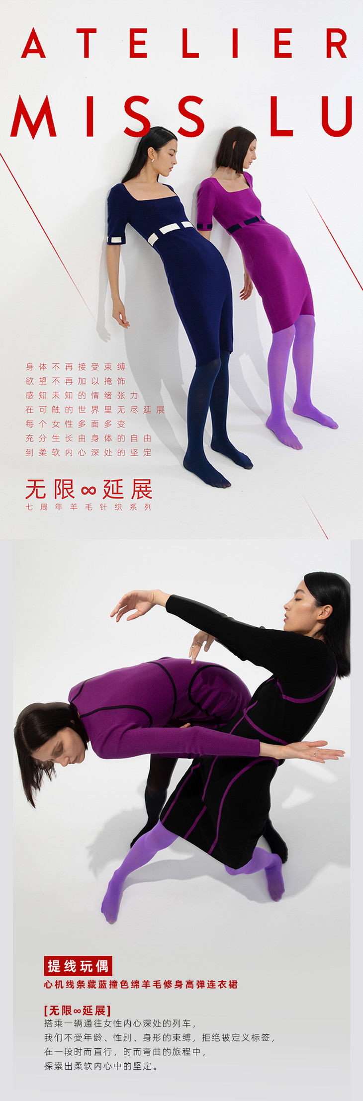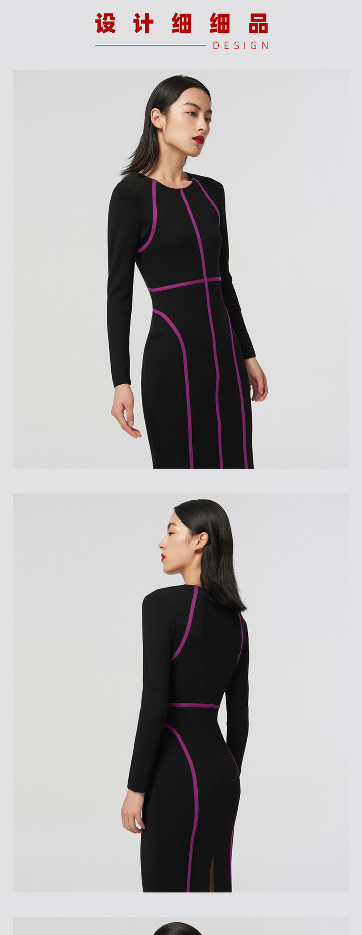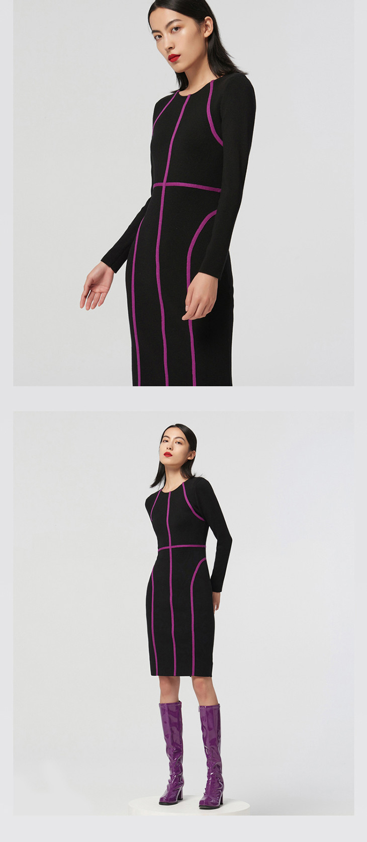 [提线玩偶]AtelierMissLu心机线条黑色撞色绵羊毛修身高弹连衣裙
