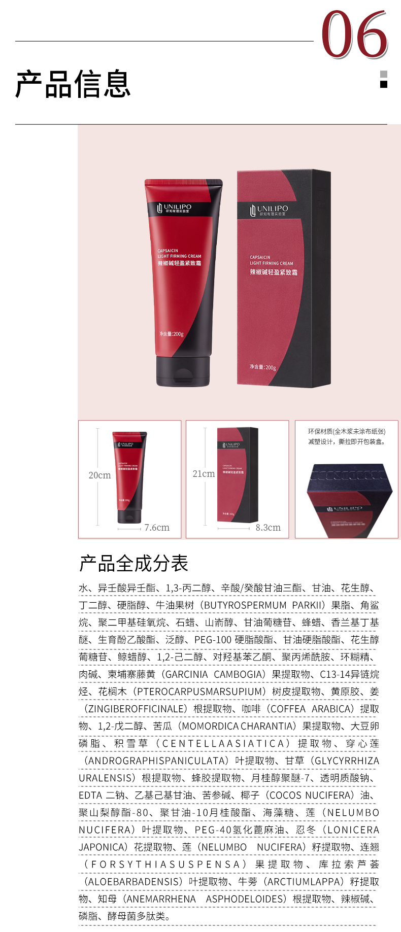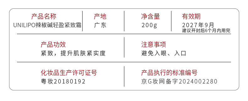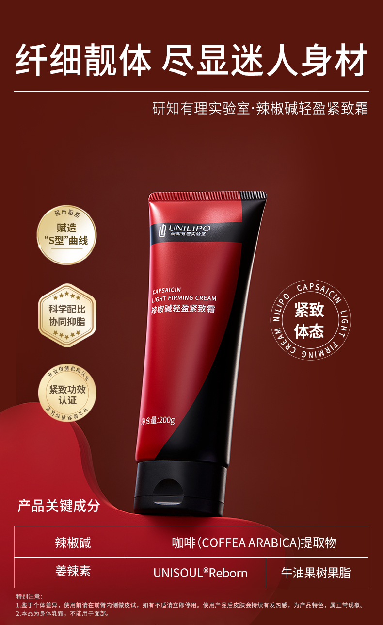 UNILIPO研知有理 实验室辣椒碱轻盈紧致霜200g