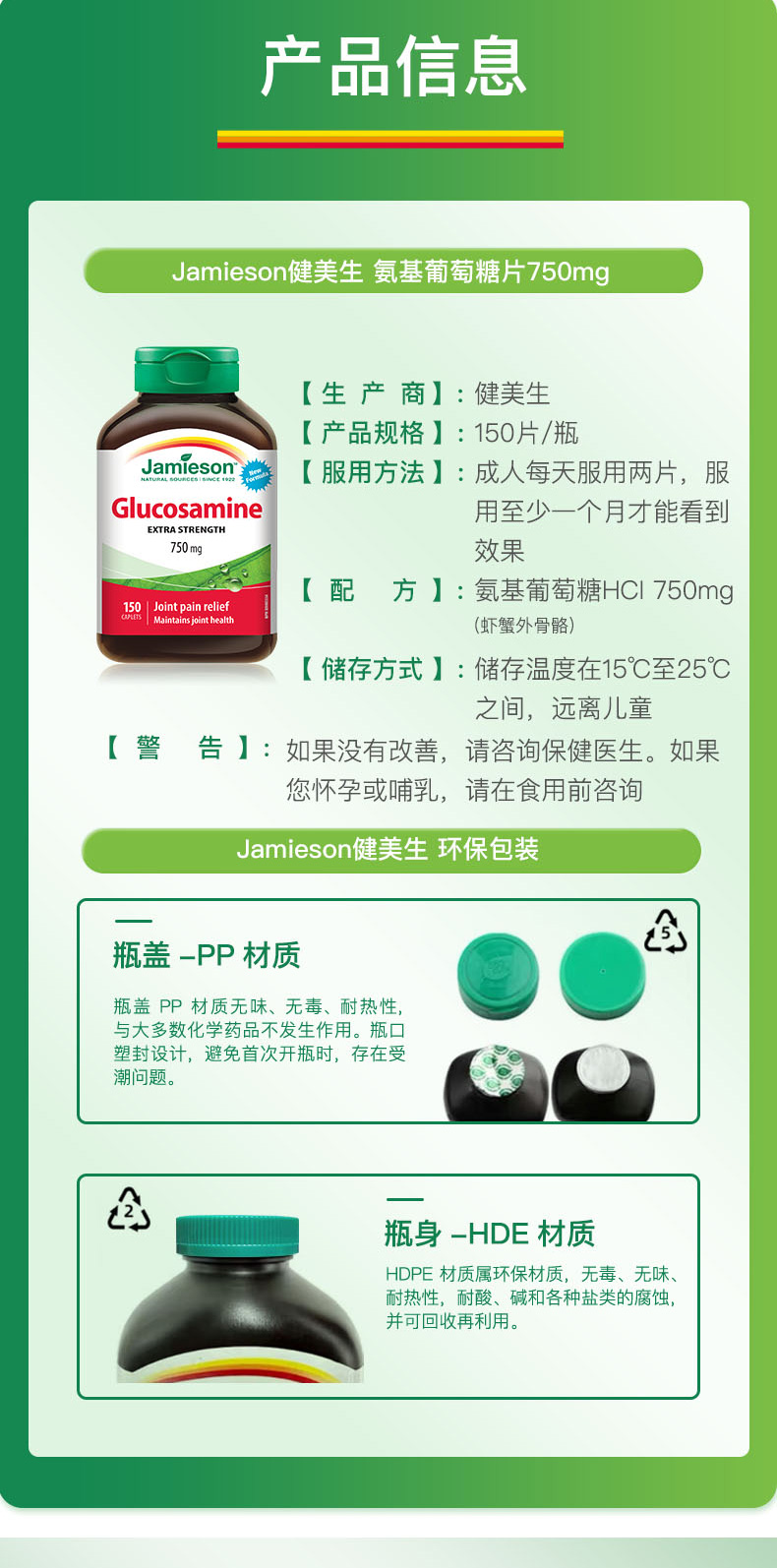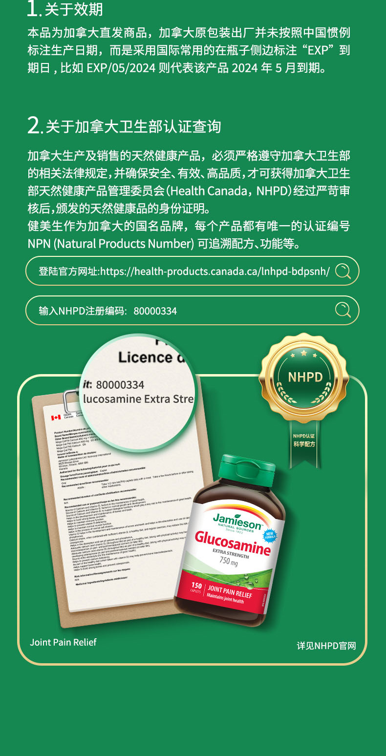 Jamieson健美生氨基葡萄片750mg软骨素150片