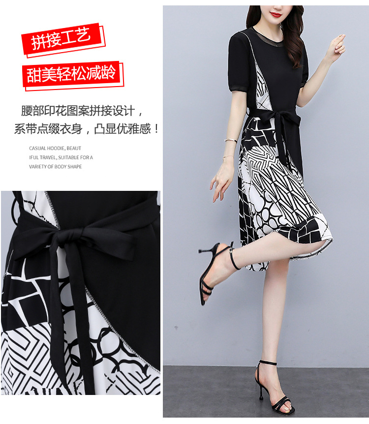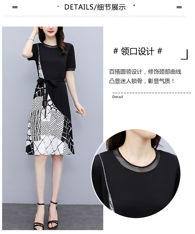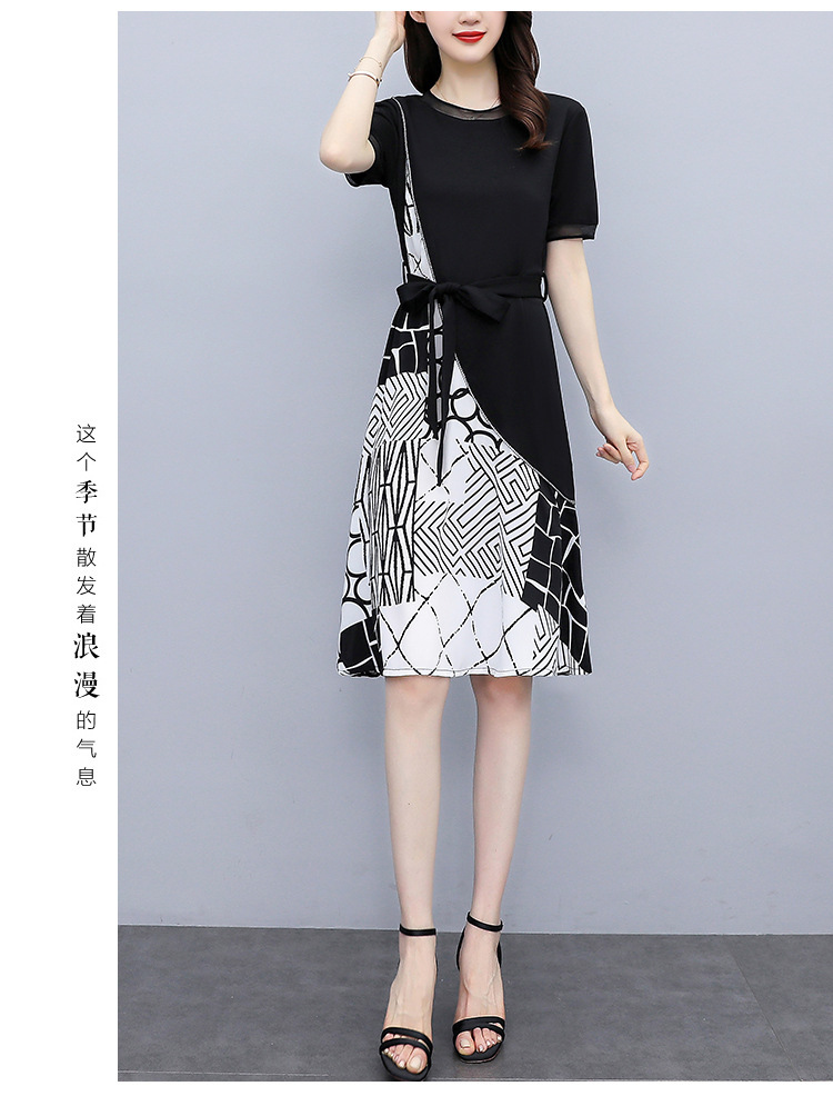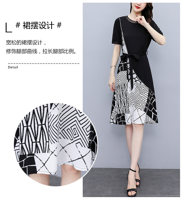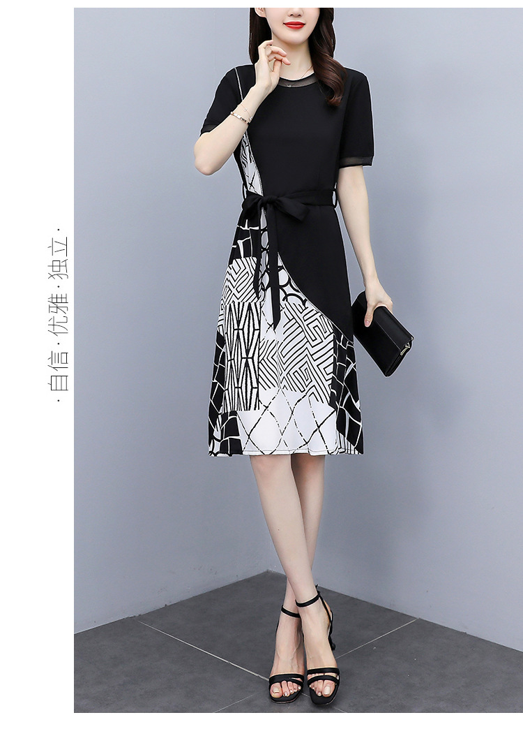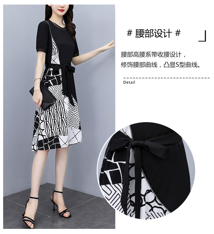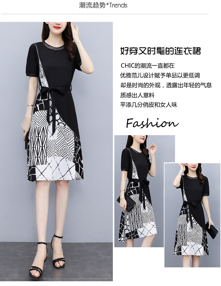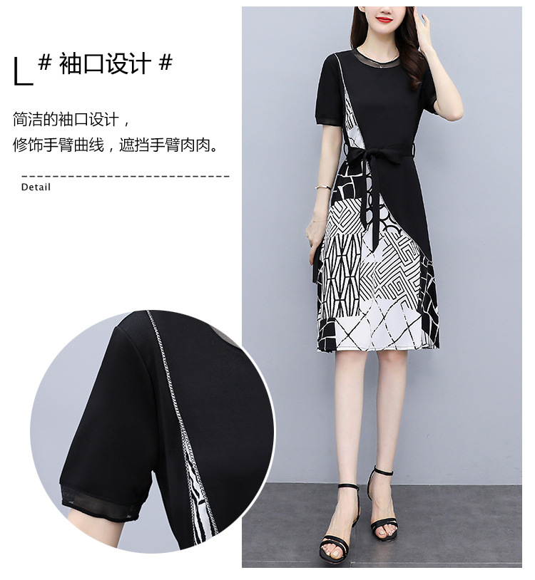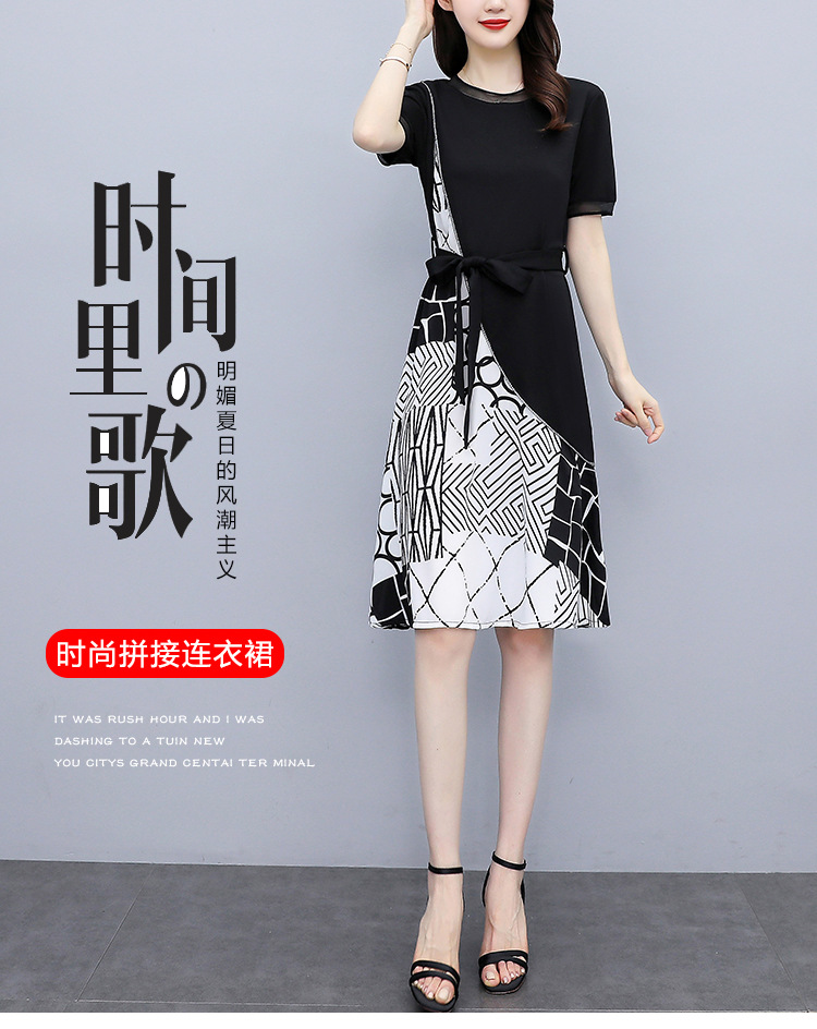 2022夏新款气质显瘦女装通勤时尚印花短袖气质拼接连衣裙 XY-LYF9934