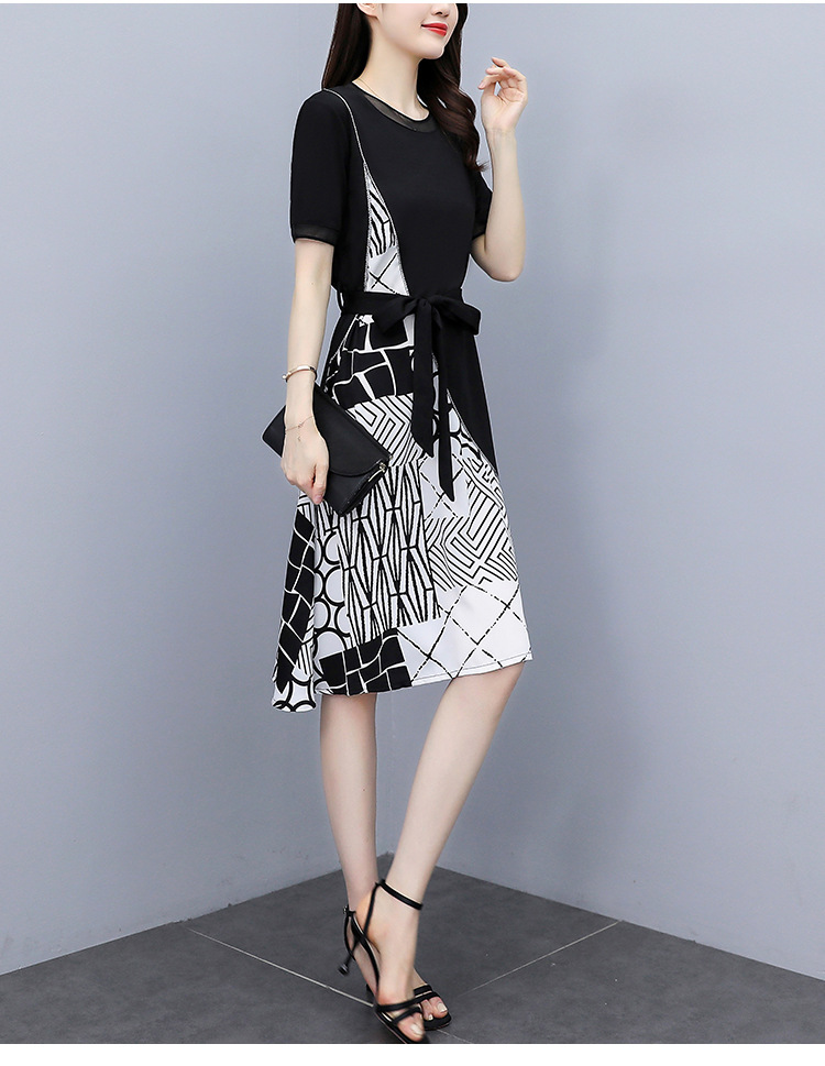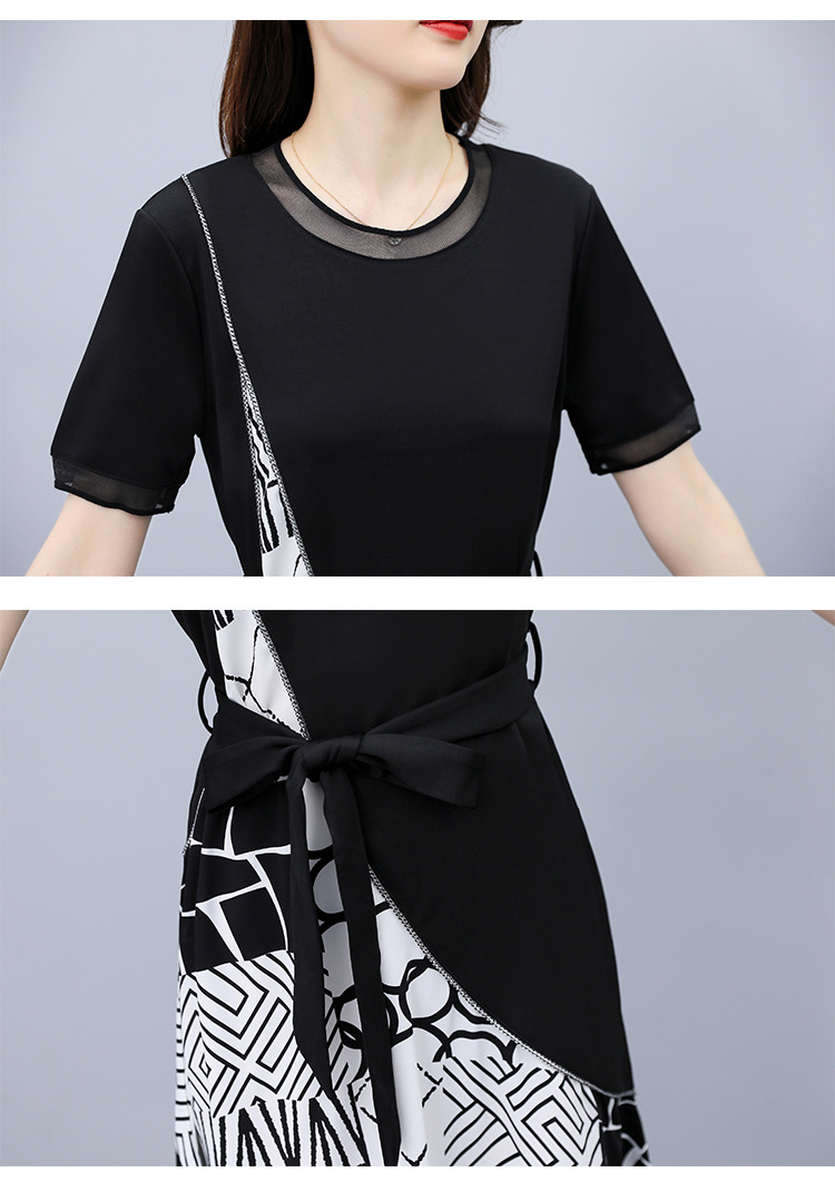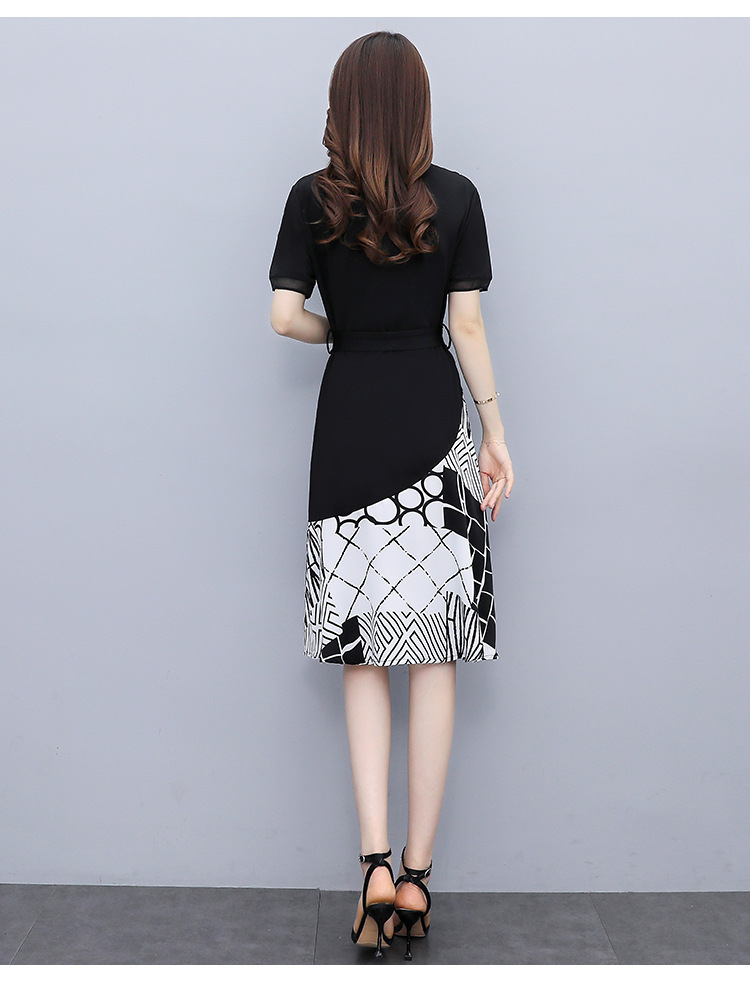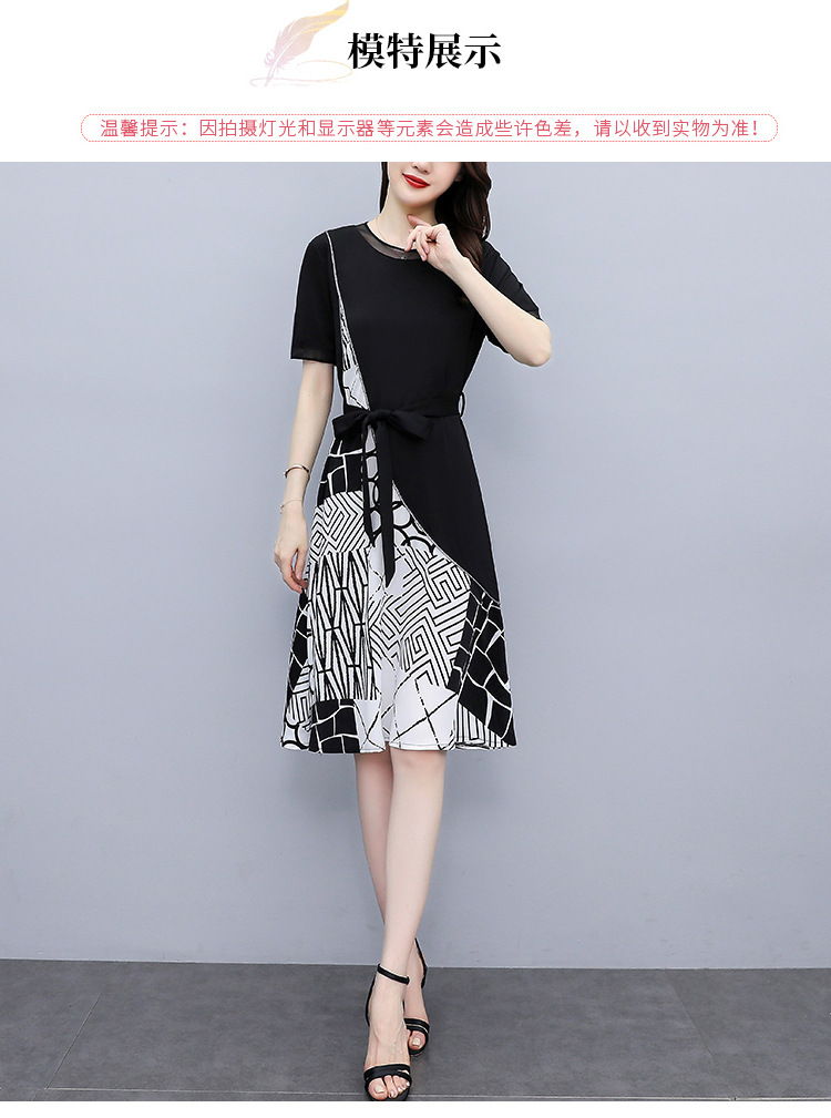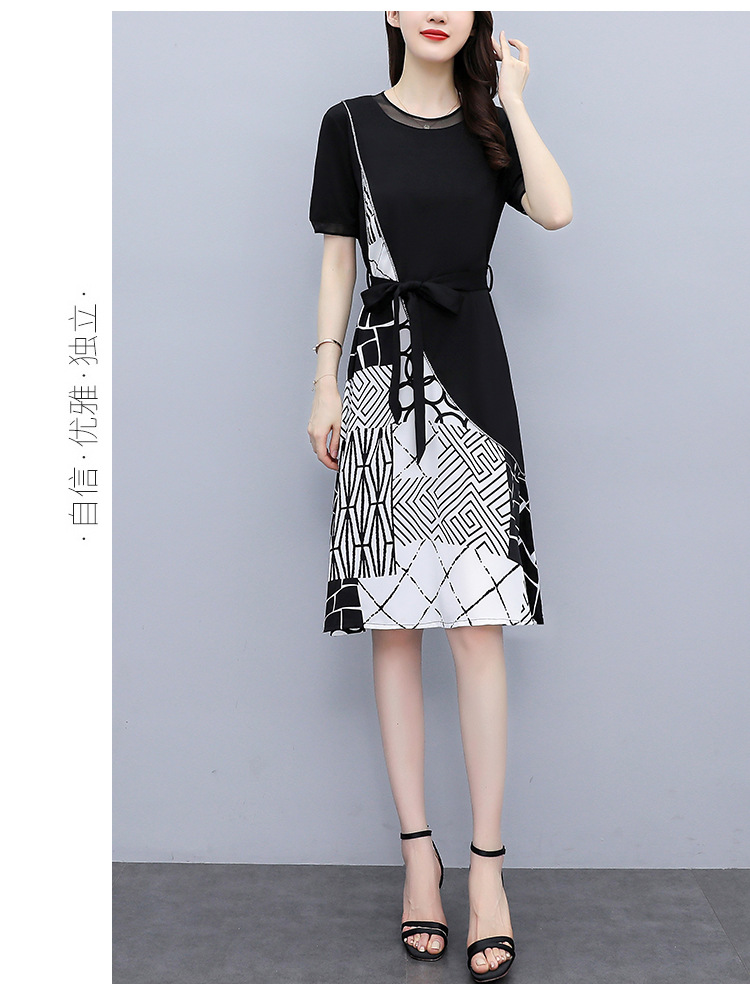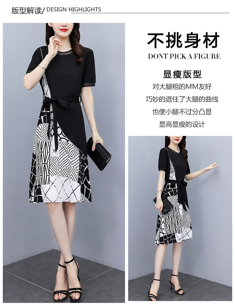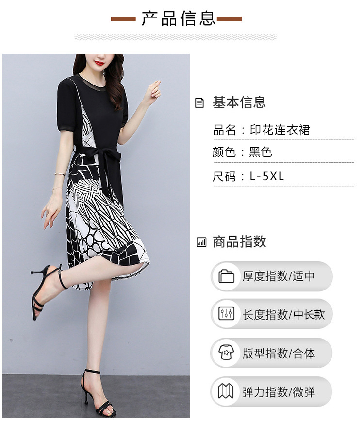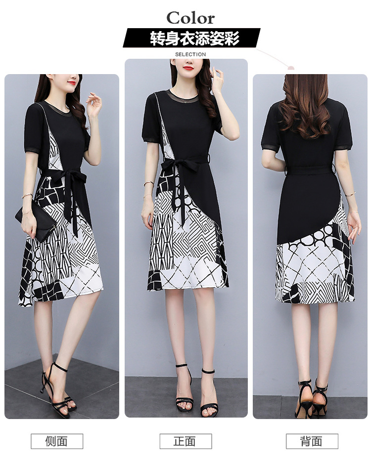 2022夏新款气质显瘦女装通勤时尚印花短袖气质拼接连衣裙 XY-LYF9934