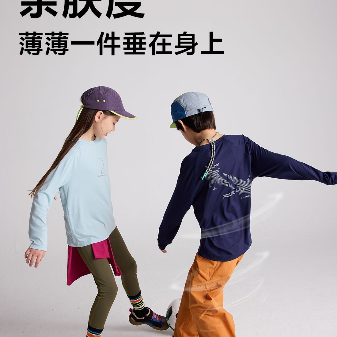 【咕噜日记】儿童天丝T恤男童弹力透气长袖秋装女童户外夜光亲肤上衣PQTX2520