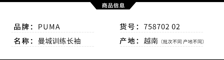 正品PUMA/彪马 20-21赛季曼城拇指扣长袖训练服男75870202