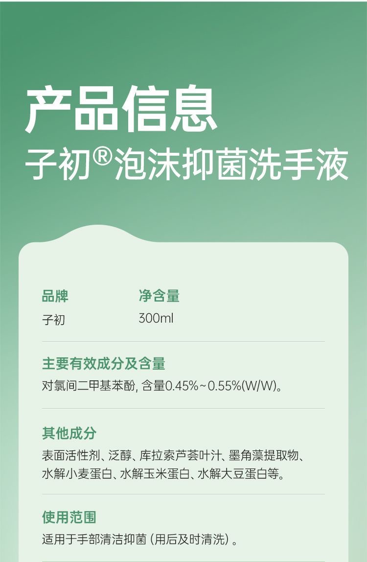 【泡沫型抑菌率99.9%】子初泡沫抑菌洗手液 300g/瓶