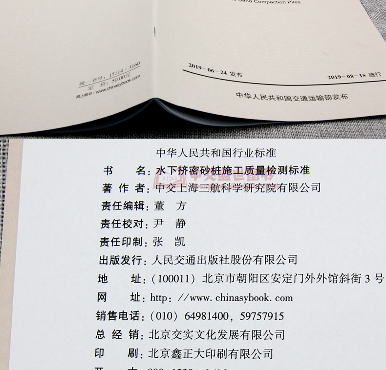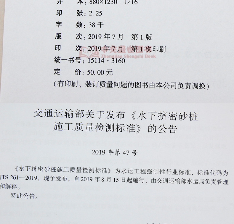 书名:水下挤密砂桩施工质量检测标准
