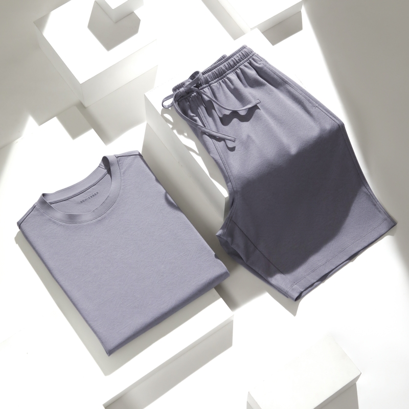 【70S丝光棉】SCHIESSER德国舒雅铂雅男士圆领短袖家居服70S丝光提花双面面料,棉,涤,桑蚕丝和氨纶合成混纺 99/24756U 99/24876P