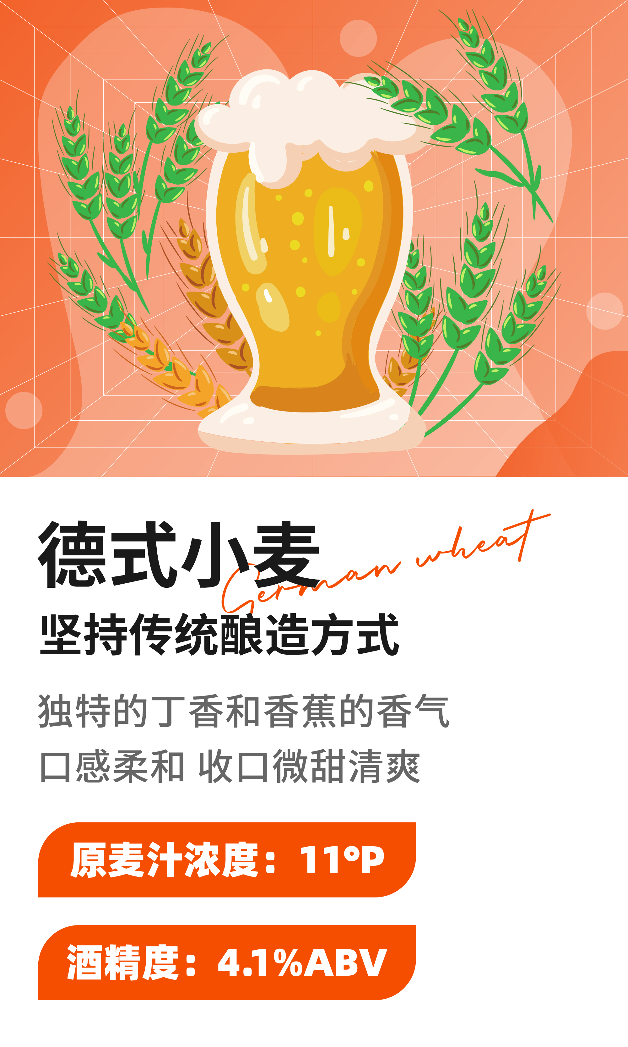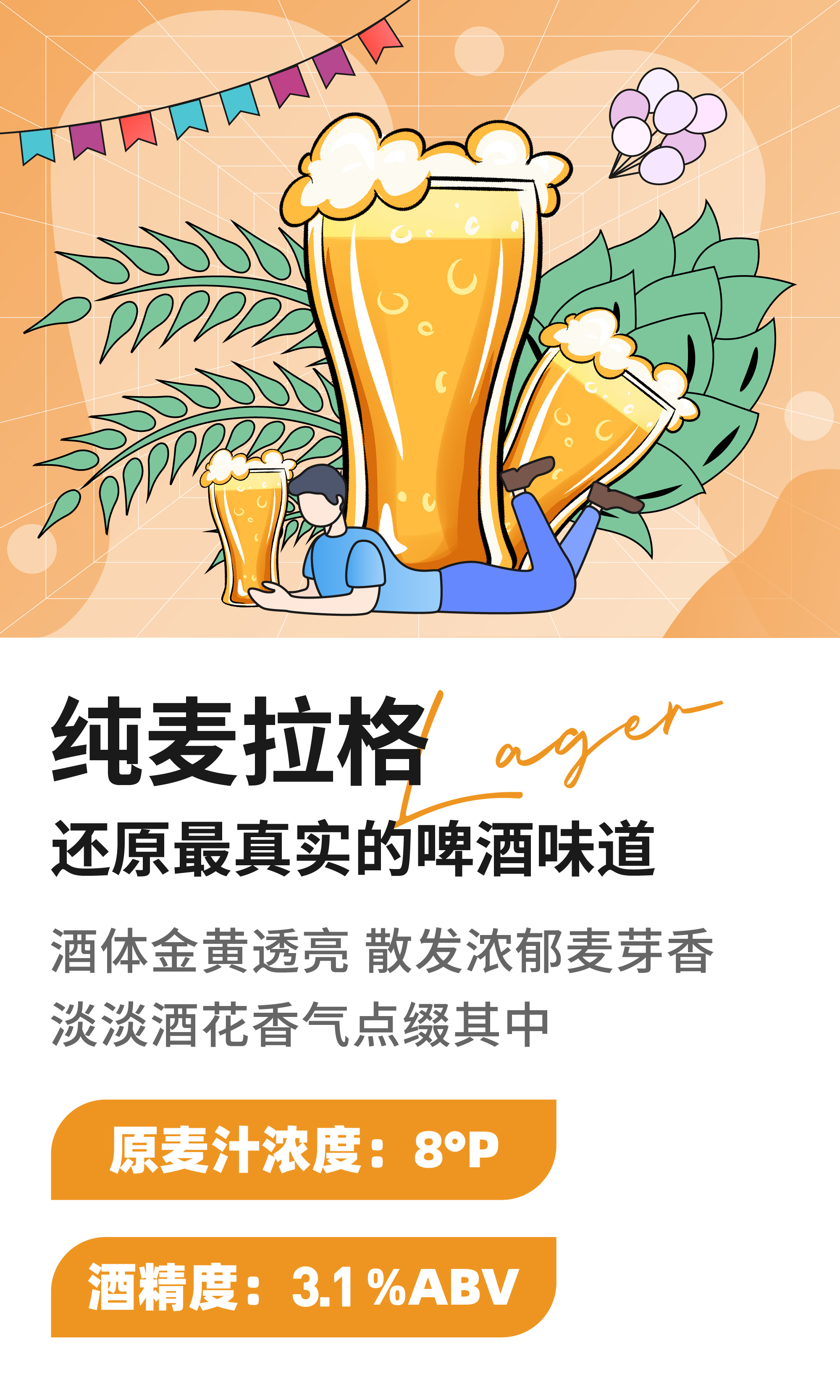 原麦汁浓度:8°P 酒精度:3.7%ABV