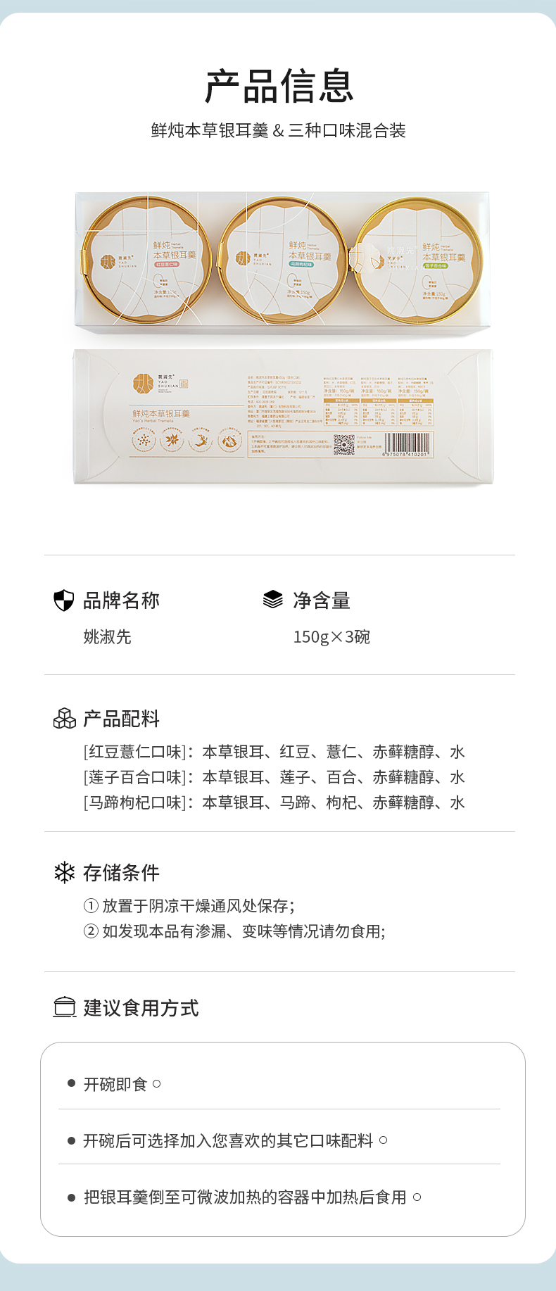 品名:姚淑先鲜炖本草银耳羹 规格:150g/碗发货地/产地:福建省厦门市