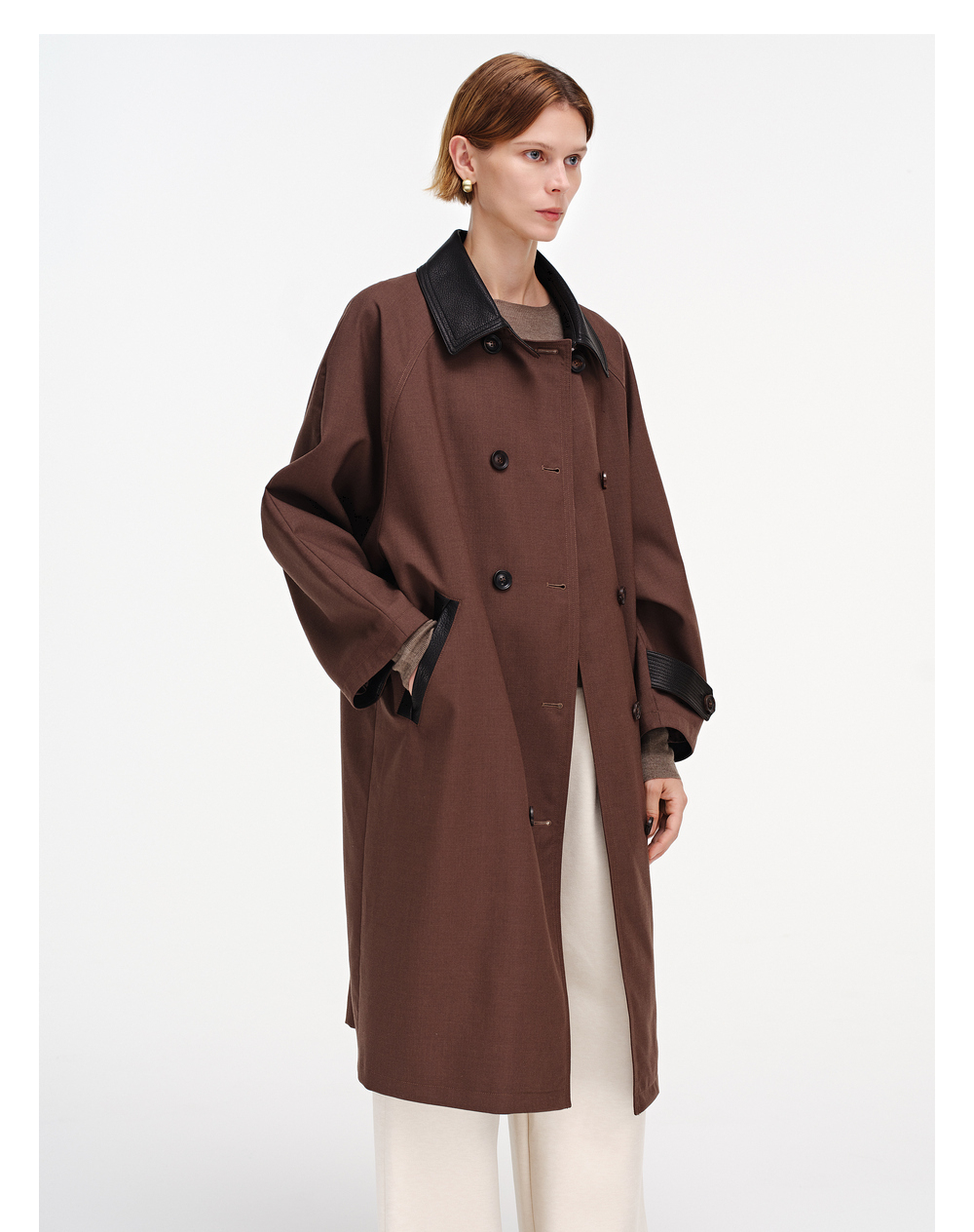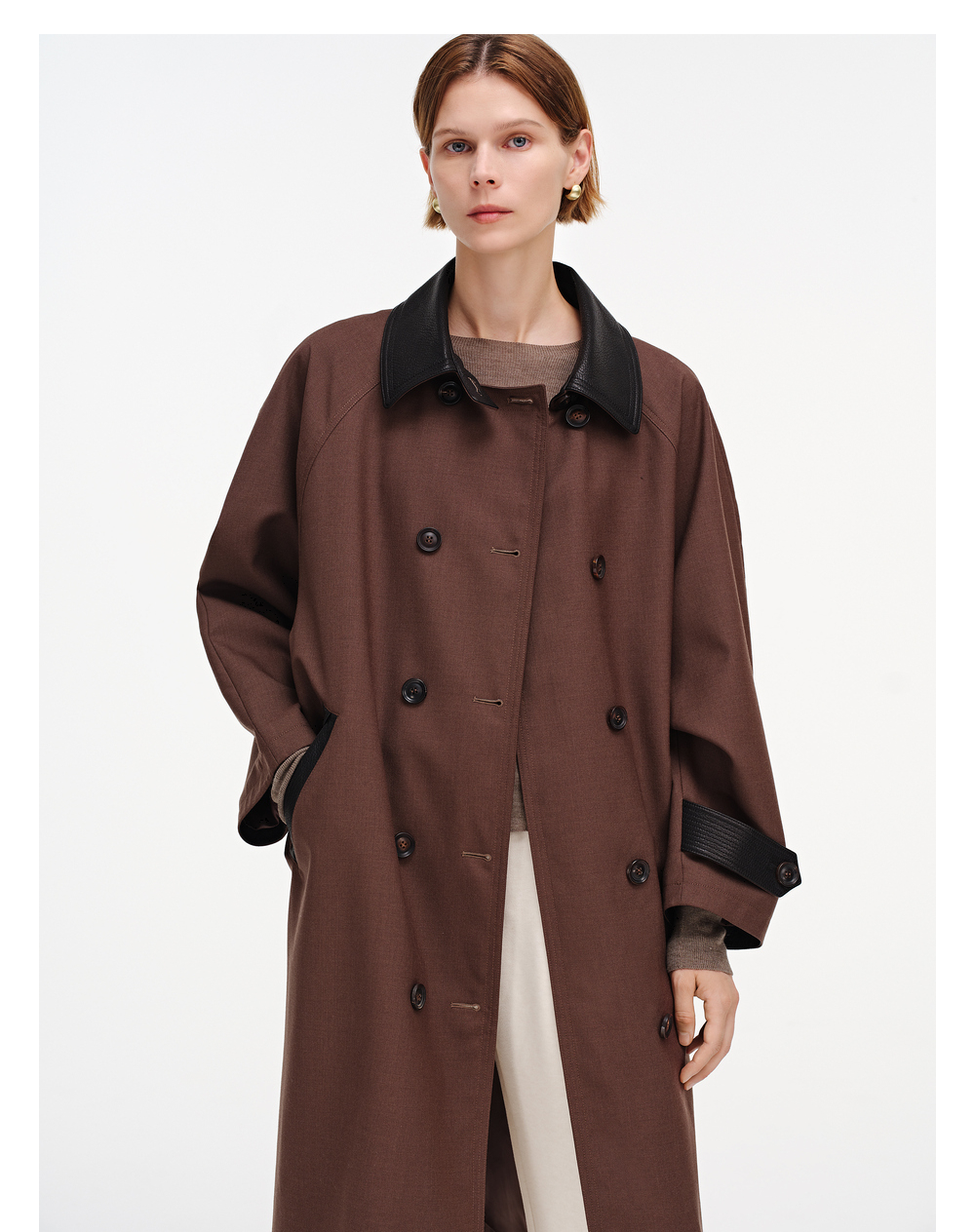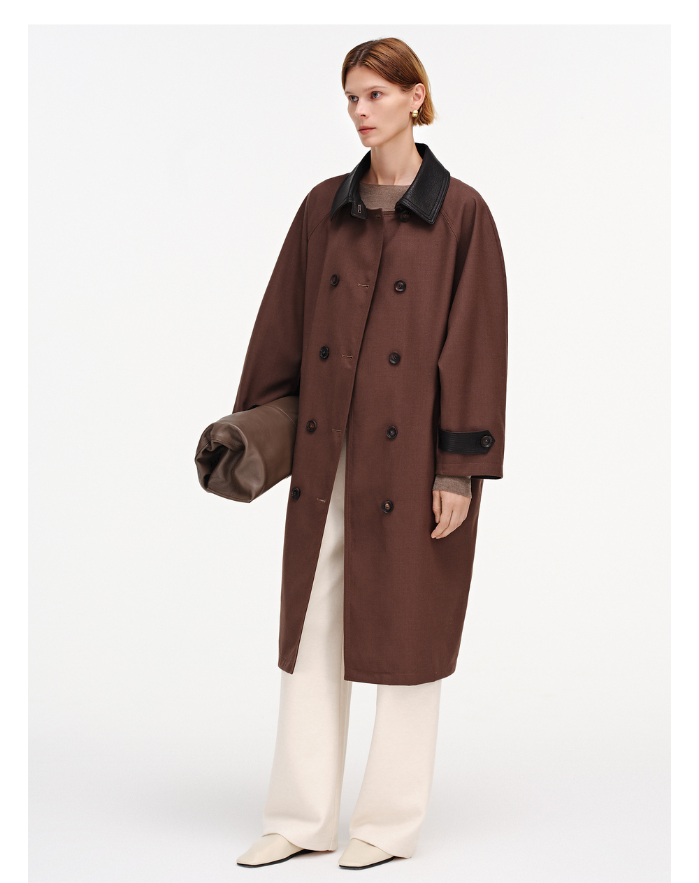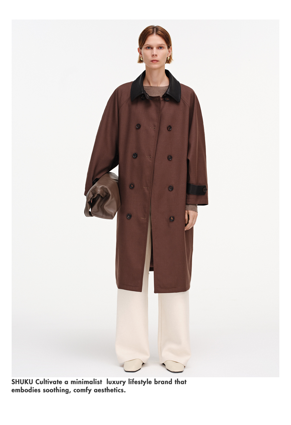 舒库羊毛风衣女秋季摩登复古拼接中长款外套oversize高级感