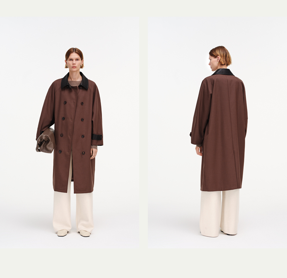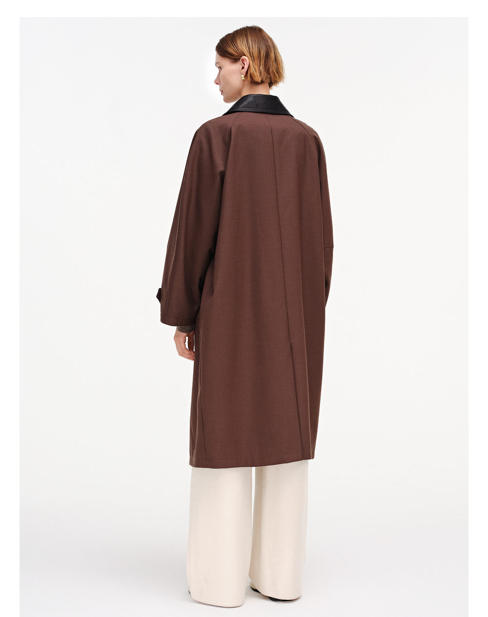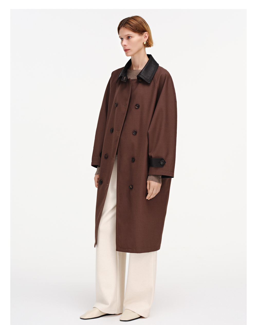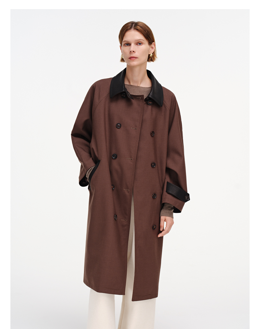 舒库羊毛风衣女秋季摩登复古拼接中长款外套oversize高级感