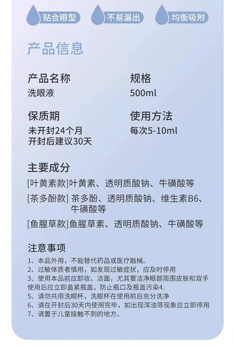 【白药精选】云南白药泰邦洗眼液500ml清洁眼部护理眼睛眼部干涩隐形眼镜美瞳眼清洁护理缓解疲劳