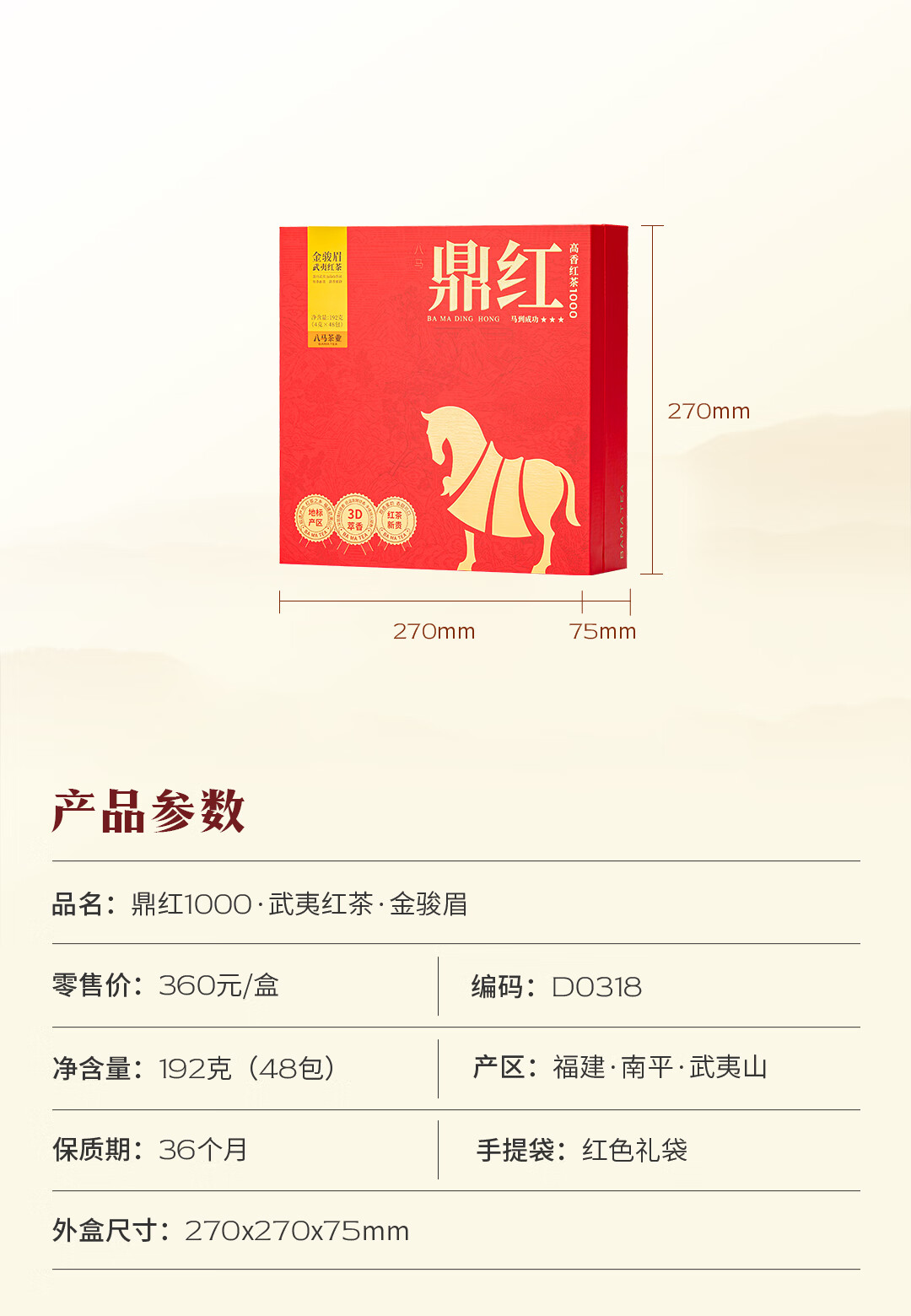 八马茶业鼎红1000武夷红茶.金骏眉 192g/盒