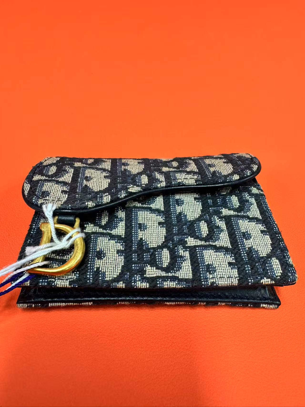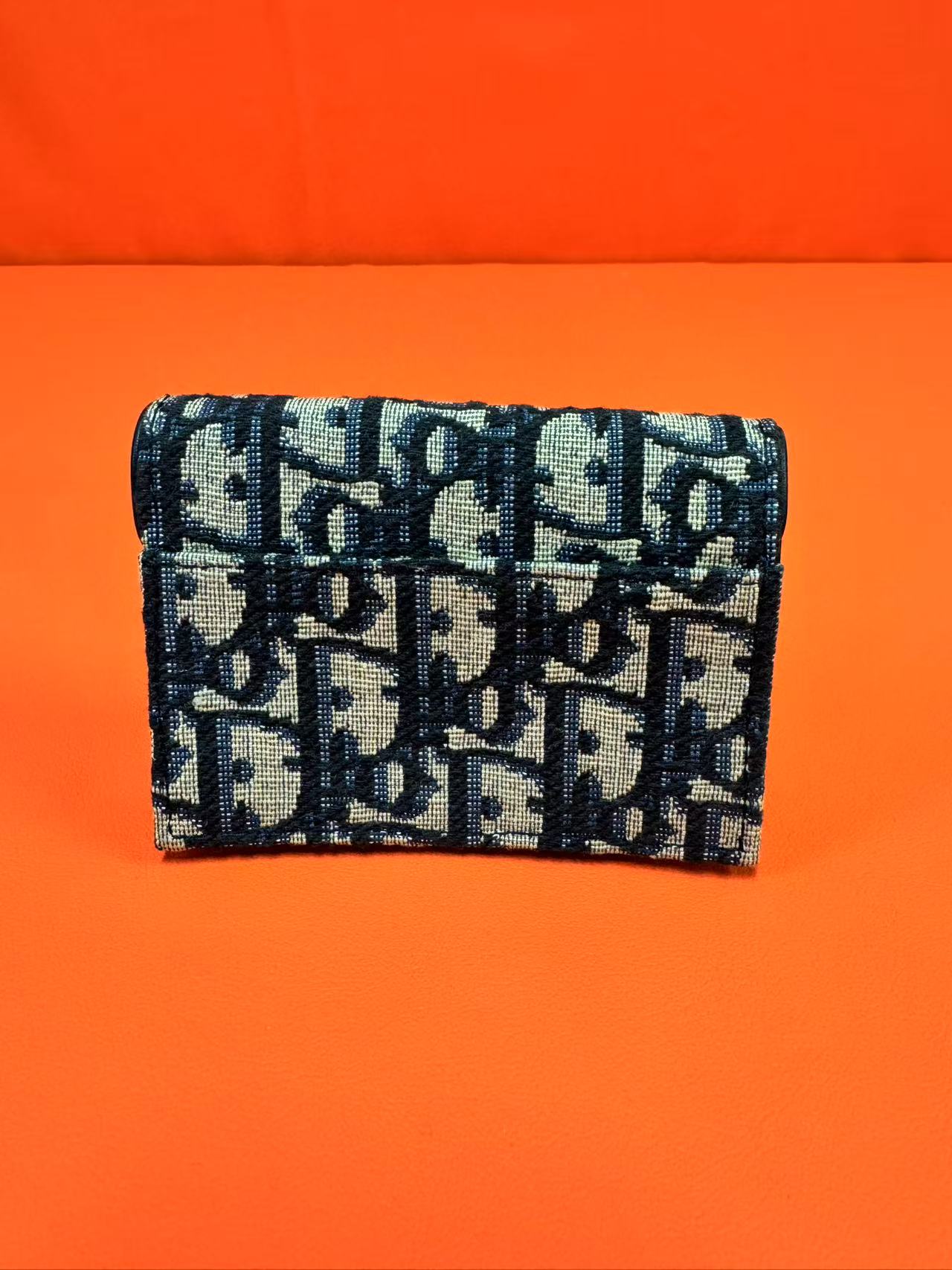 DIOR迪奥 Saddle 老花刺绣满印翻盖 织物 马鞍包卡夹卡包 女款 牛仔蓝色