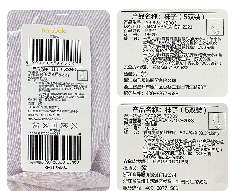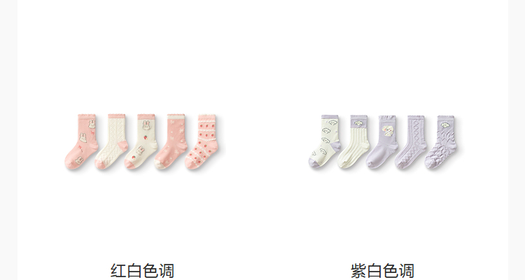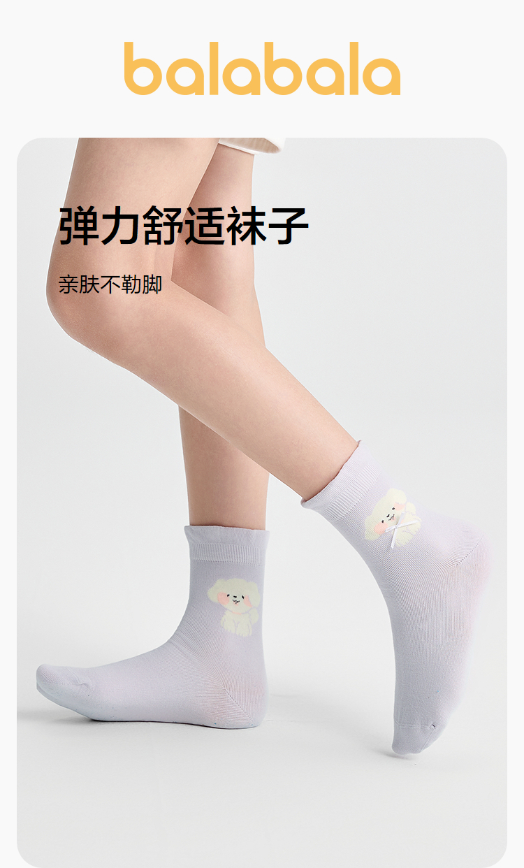 巴拉巴拉女童袜子秋季新品儿童中筒袜学生袜柔弹不勒脚甜美五双装