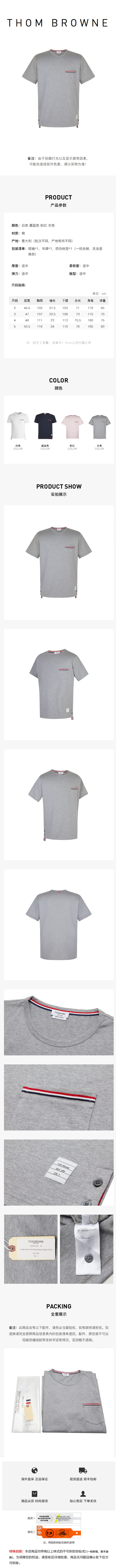 THOM BROWNE汤姆·布朗 男士罗缎饰袋圆领短袖T恤 MJS010A 01454