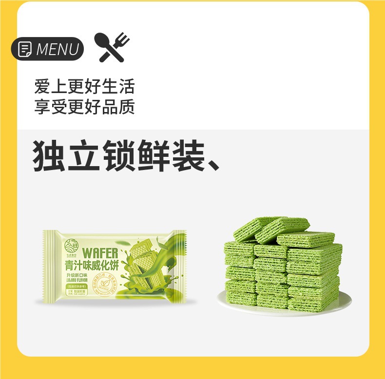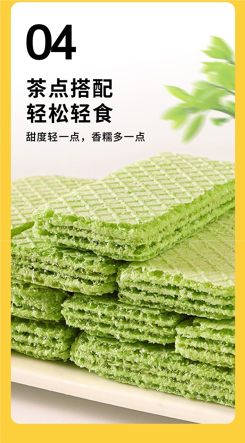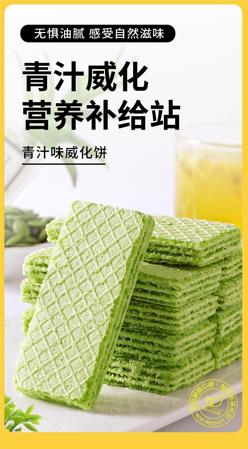 【酥脆醇香口感!青汁威化饼干】身轻如燕、口感细腻,嘴里爽脆可口,香气四溢,早餐零食下午茶点威化饼健康