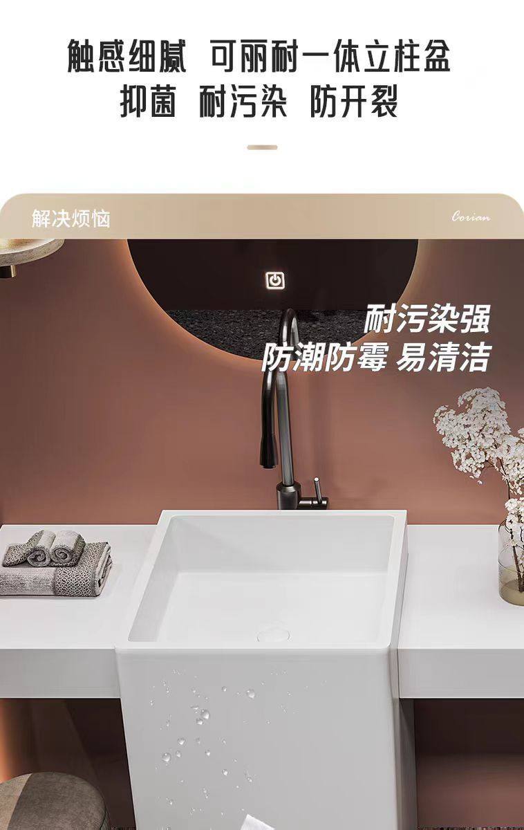 洗手洗漱卫浴浴室柜柜盆可丽耐立柱柜卫生间洗脸盆一体台组合