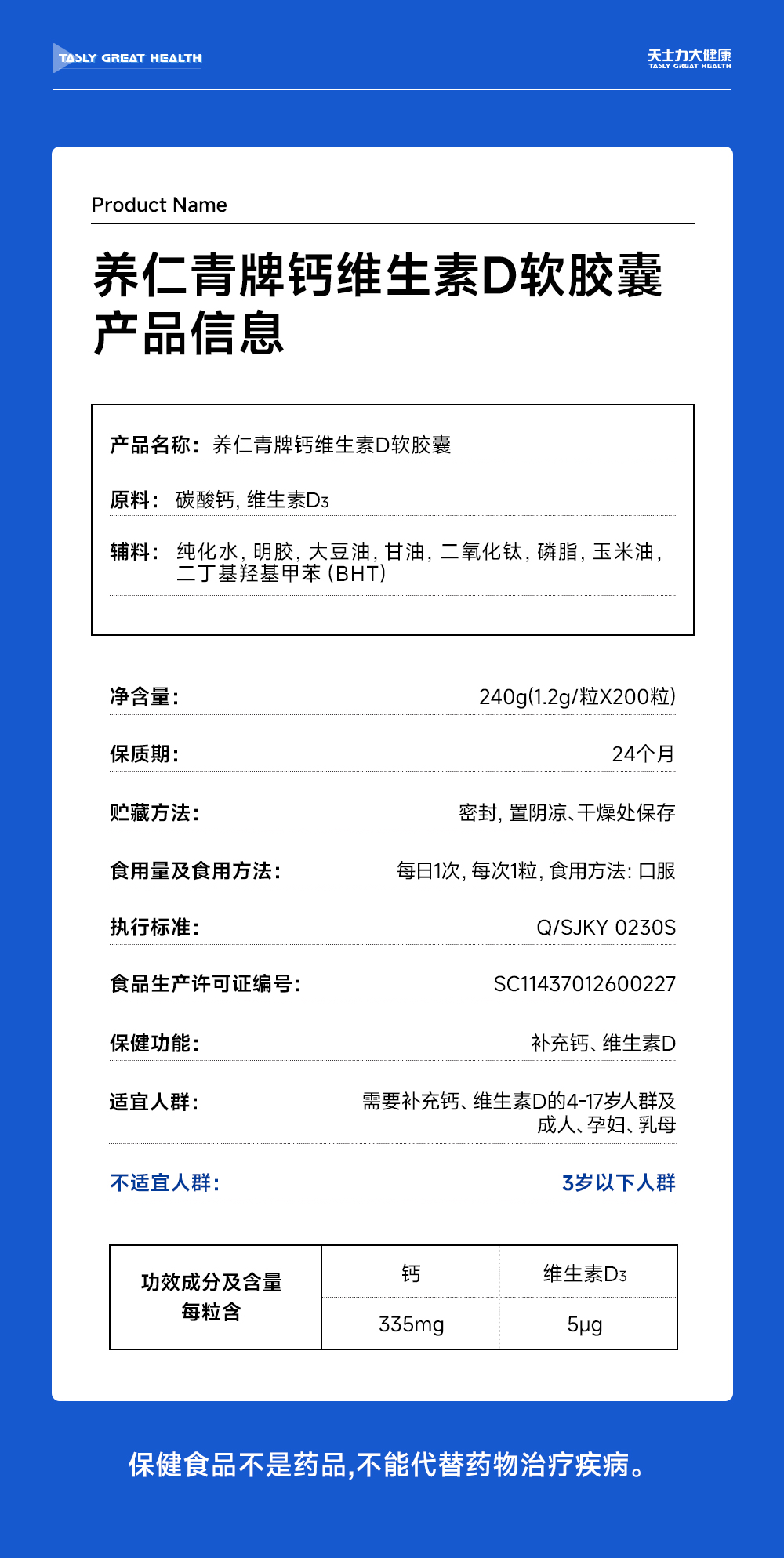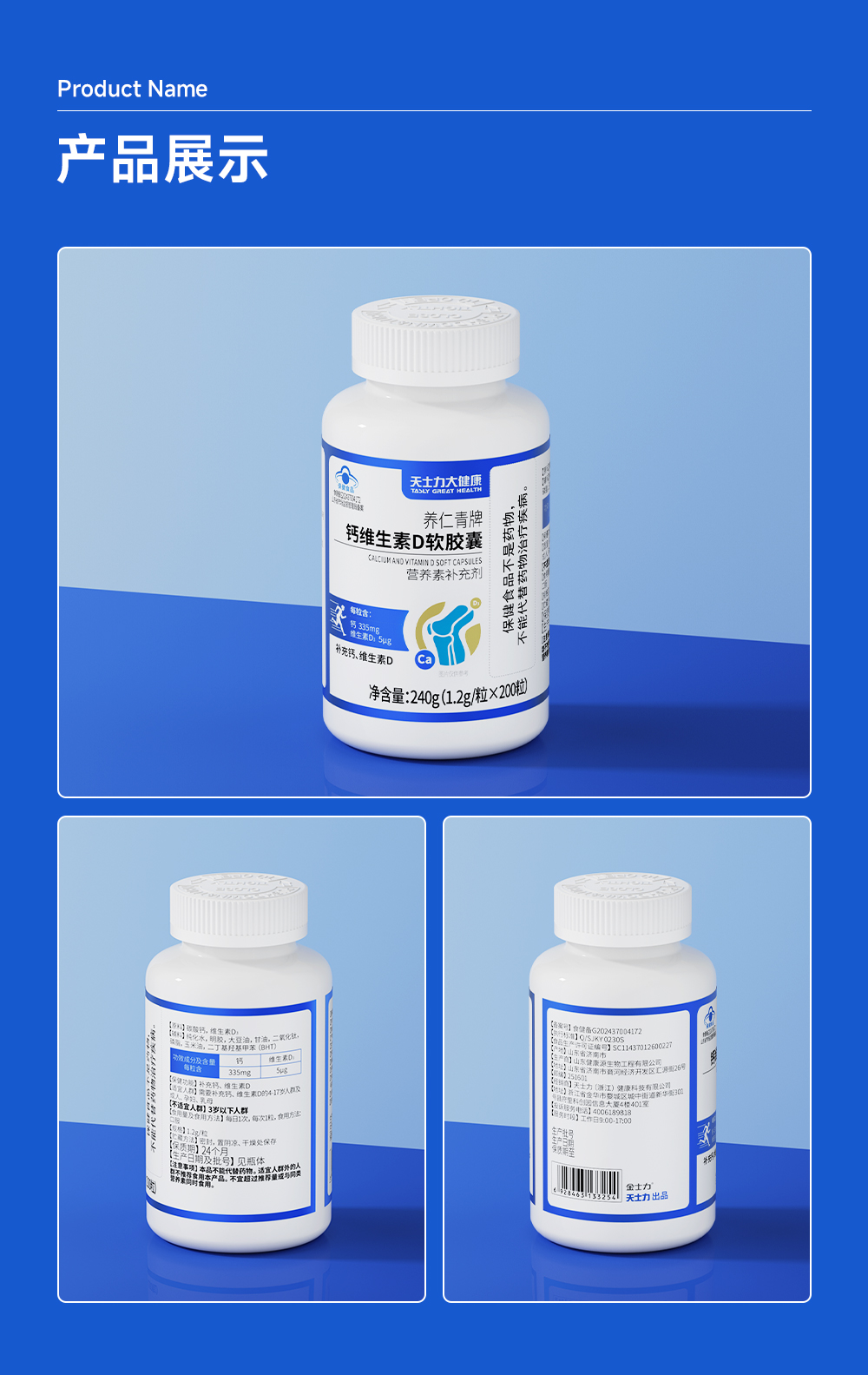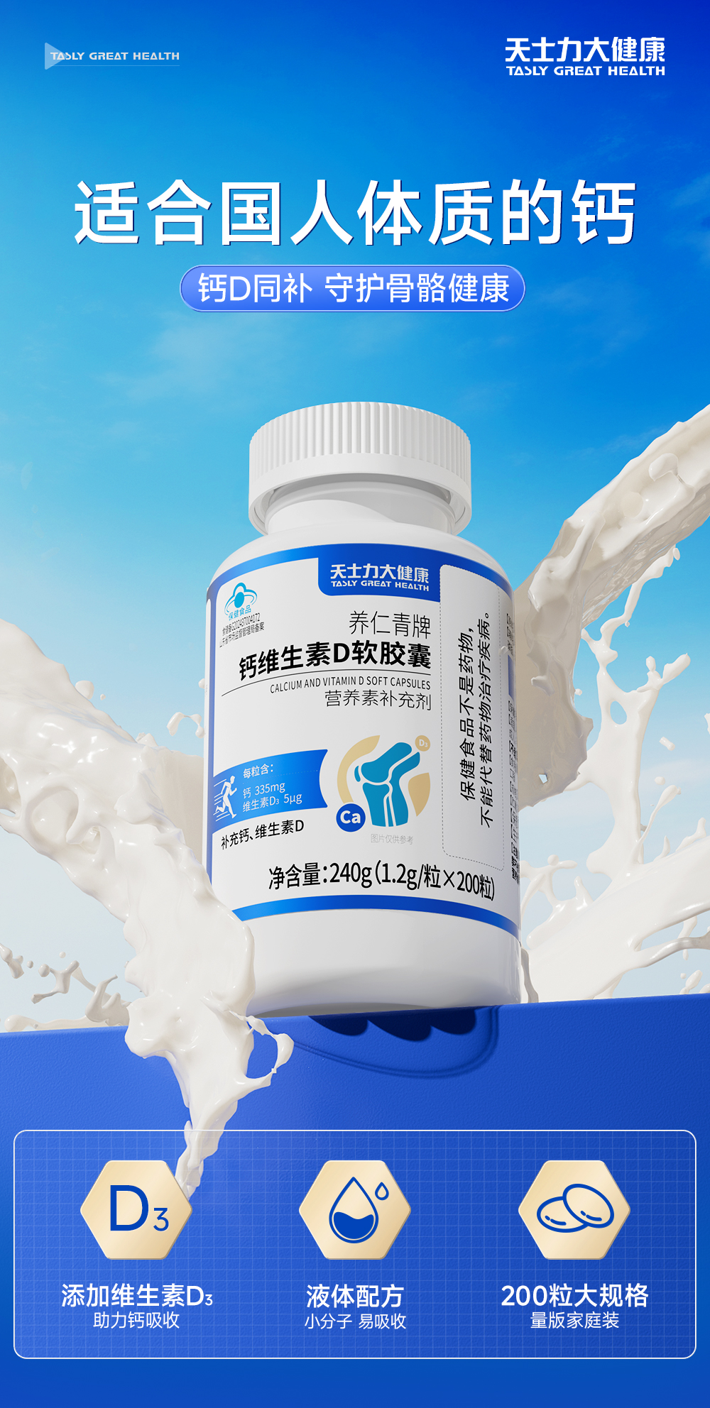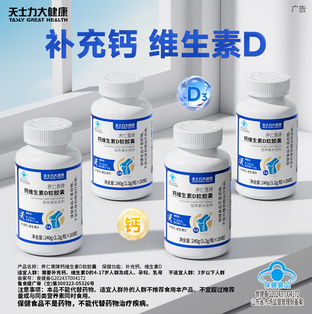 天士力大健康养仁青牌钙维生素D软胶囊(1.2g*200粒)