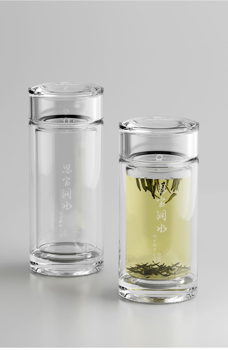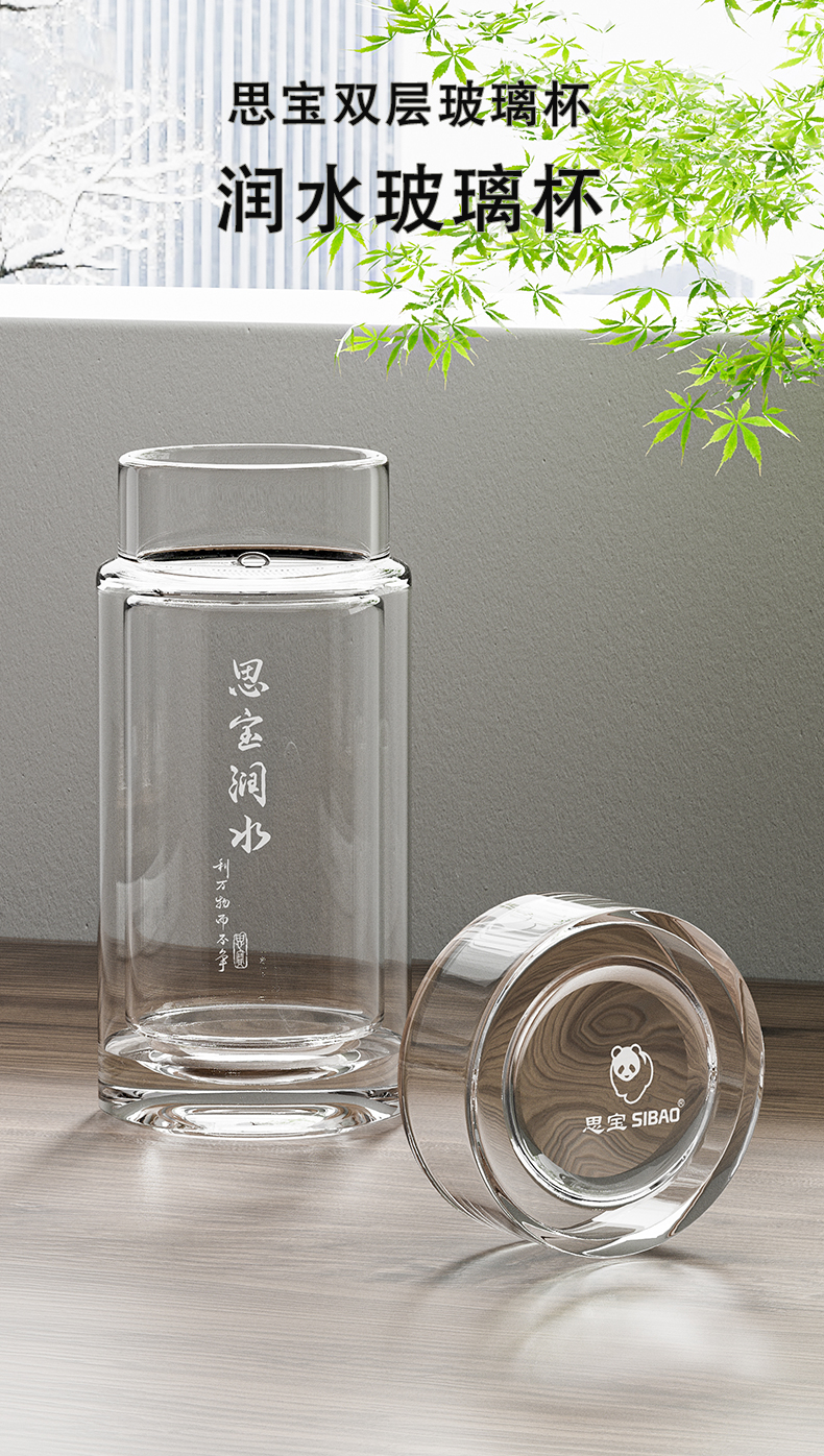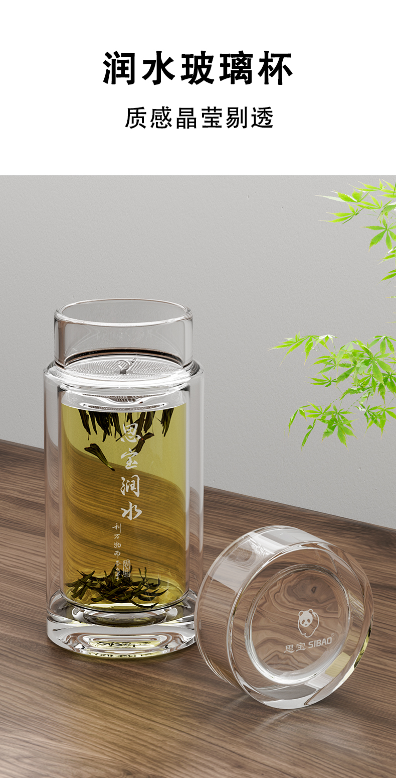 思宝旗舰店新品思宝润水双层玻璃杯便携车载礼盒包装