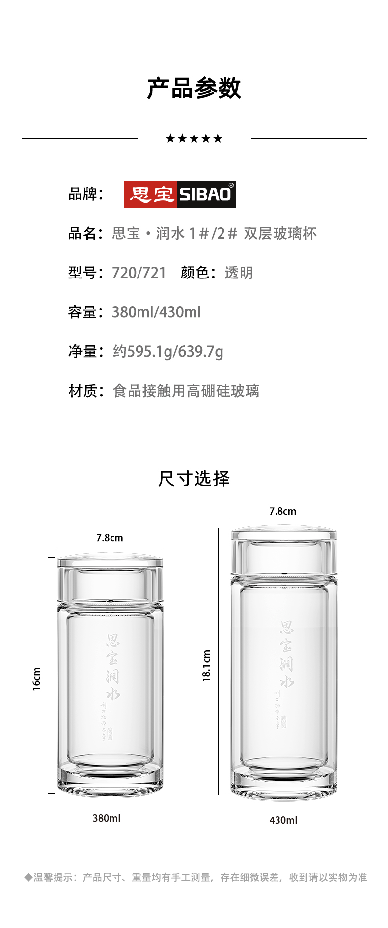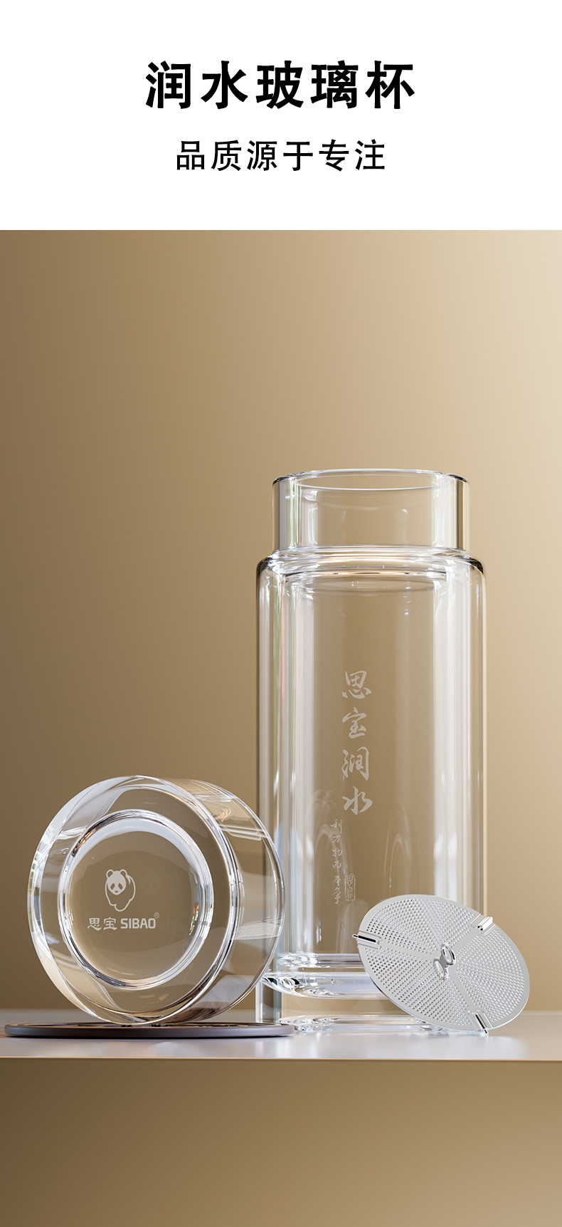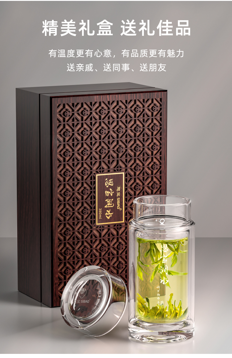 思宝旗舰店新品思宝润水双层玻璃杯便携车载礼盒包装