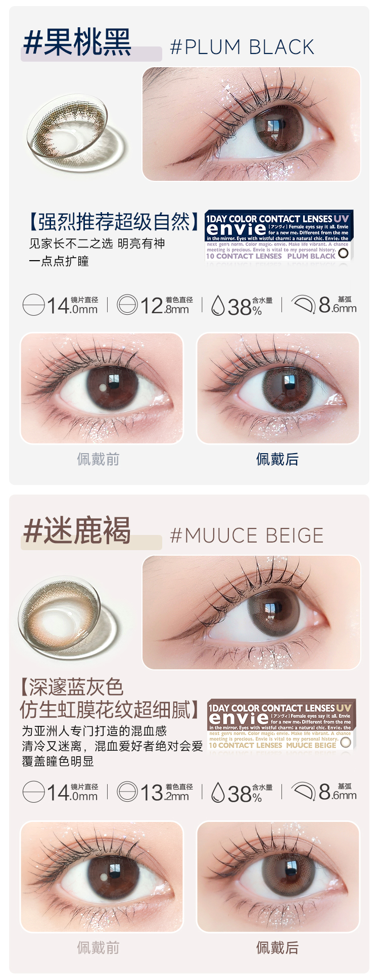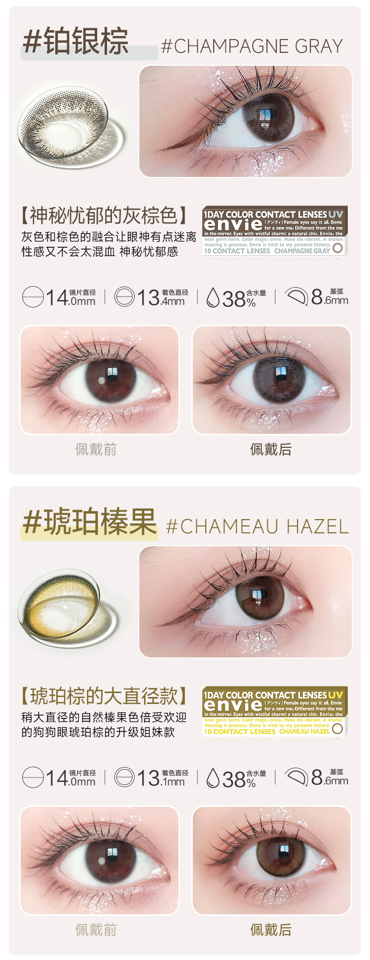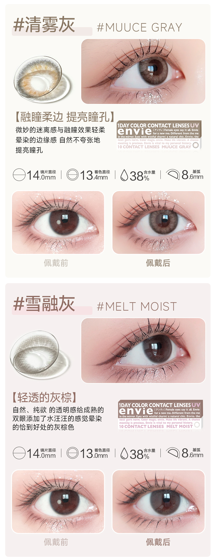 【品牌旗舰店 保税仓直发】envie梨花美瞳日抛10片女小直径近视隐形眼镜盒非月抛半年抛