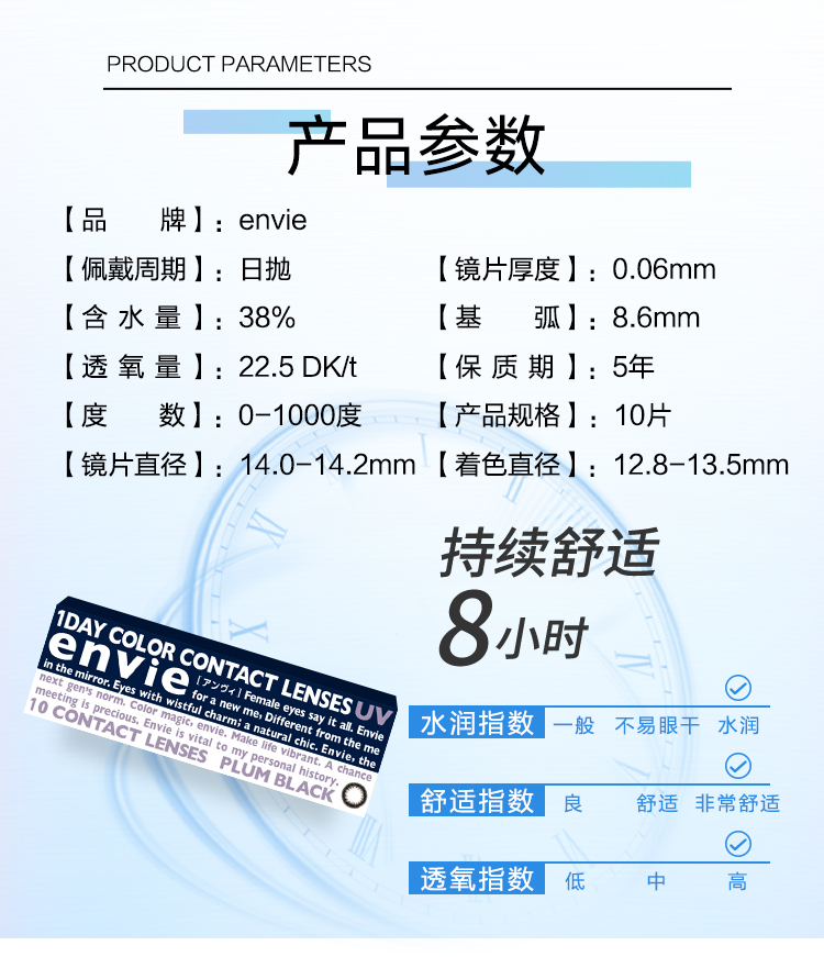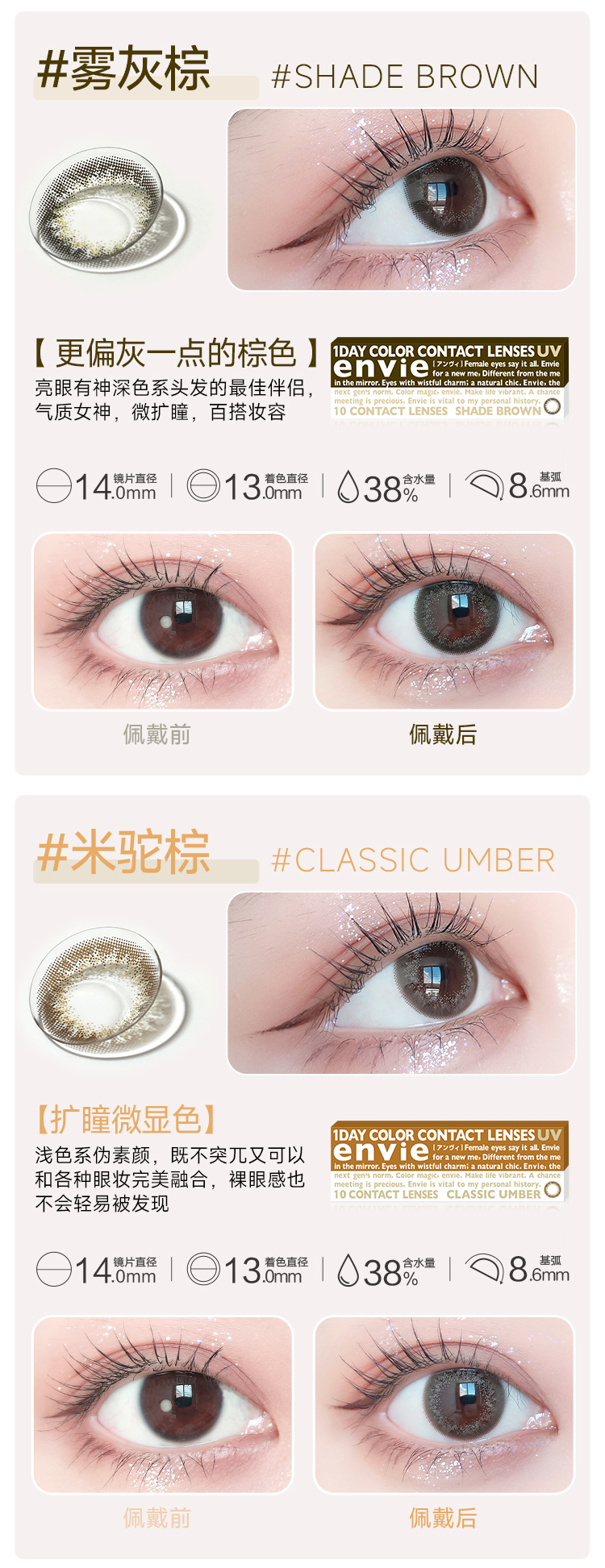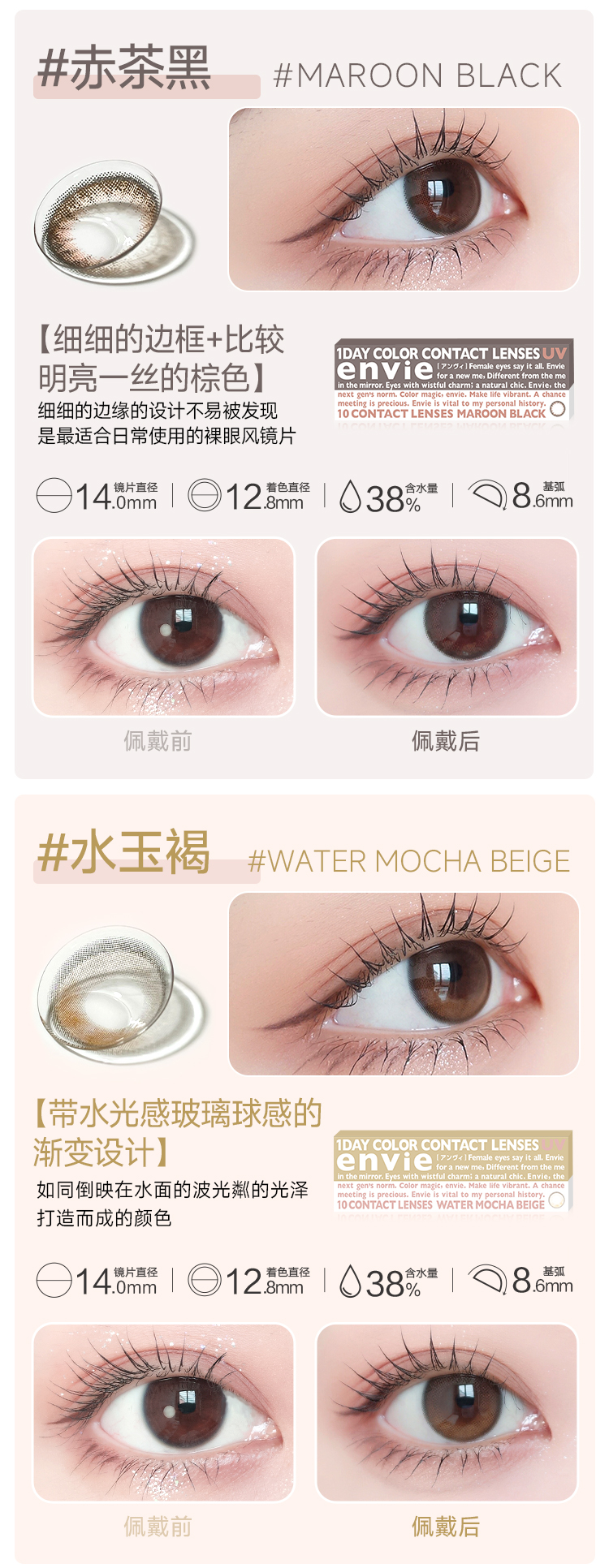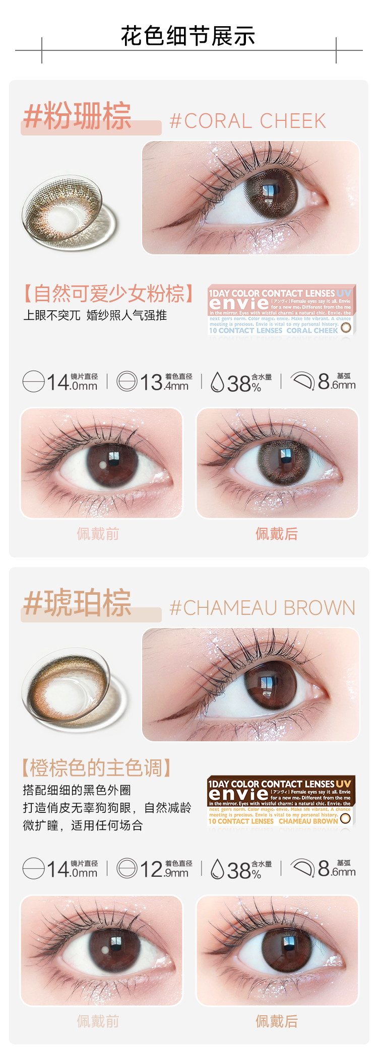 【品牌旗舰店 保税仓直发】envie梨花美瞳日抛10片女小直径近视隐形眼镜盒非月抛半年抛