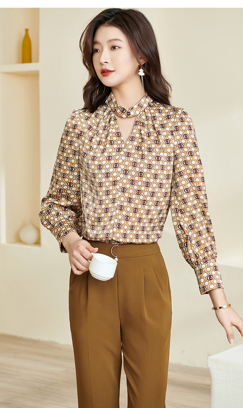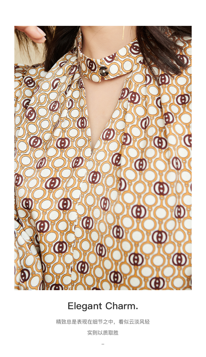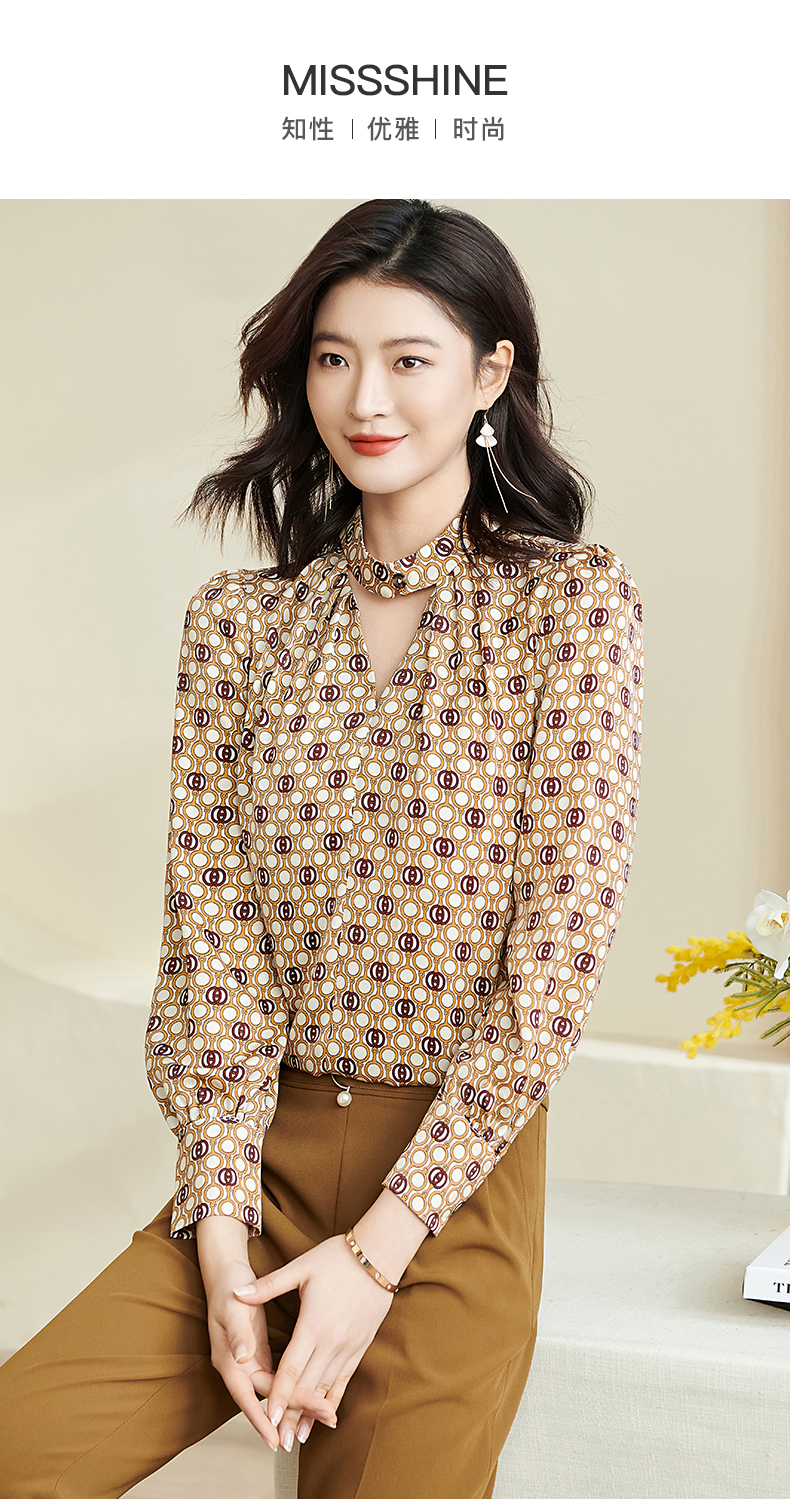 剩S 米思阳2025春季新款气质知性小V领衬衫时尚印花长袖女士衬衣0853