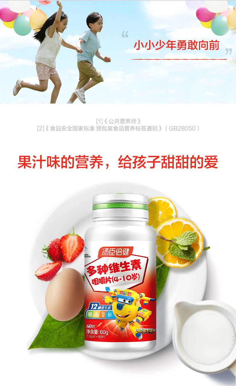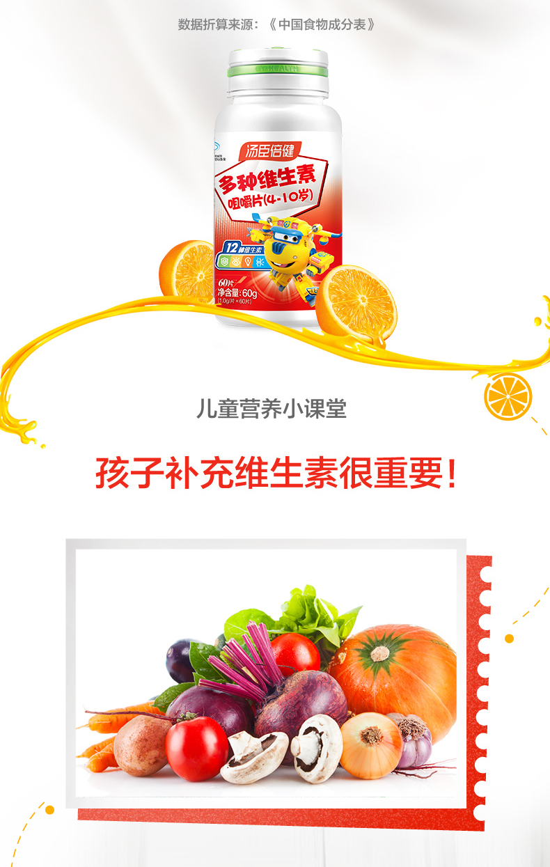 【效期25年11月】汤臣倍健免疫力多种维生素咀嚼片4-10岁儿童型vc增强60片