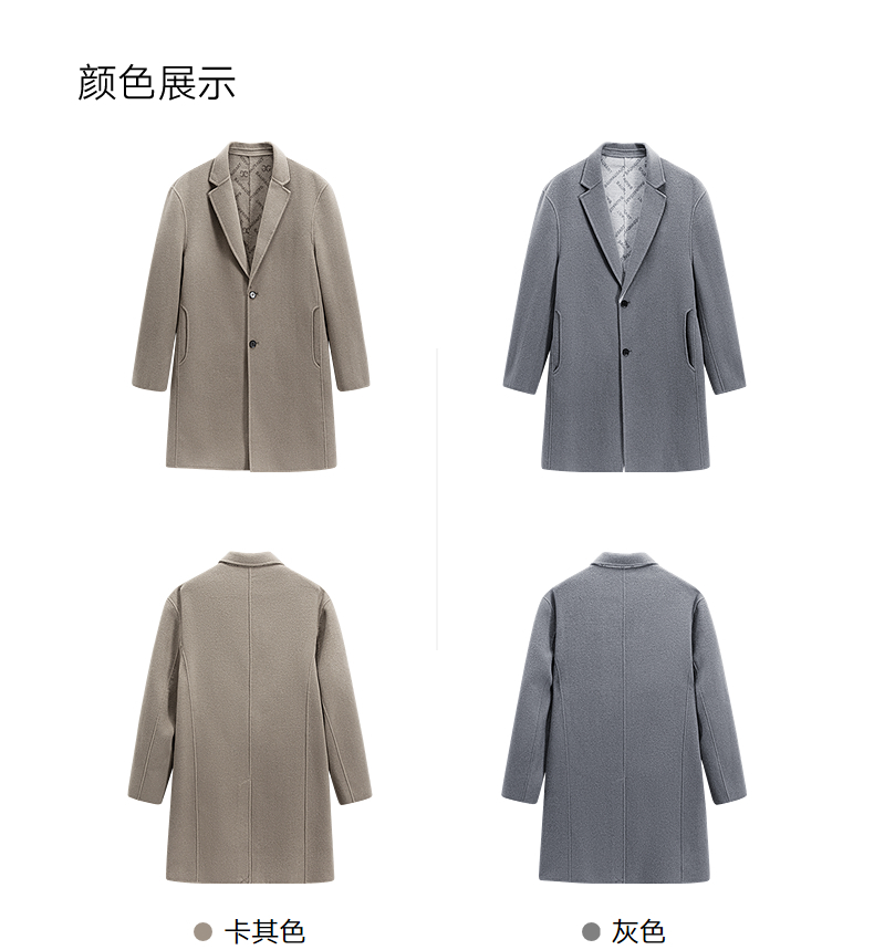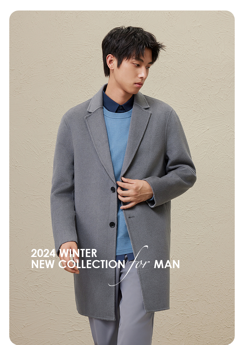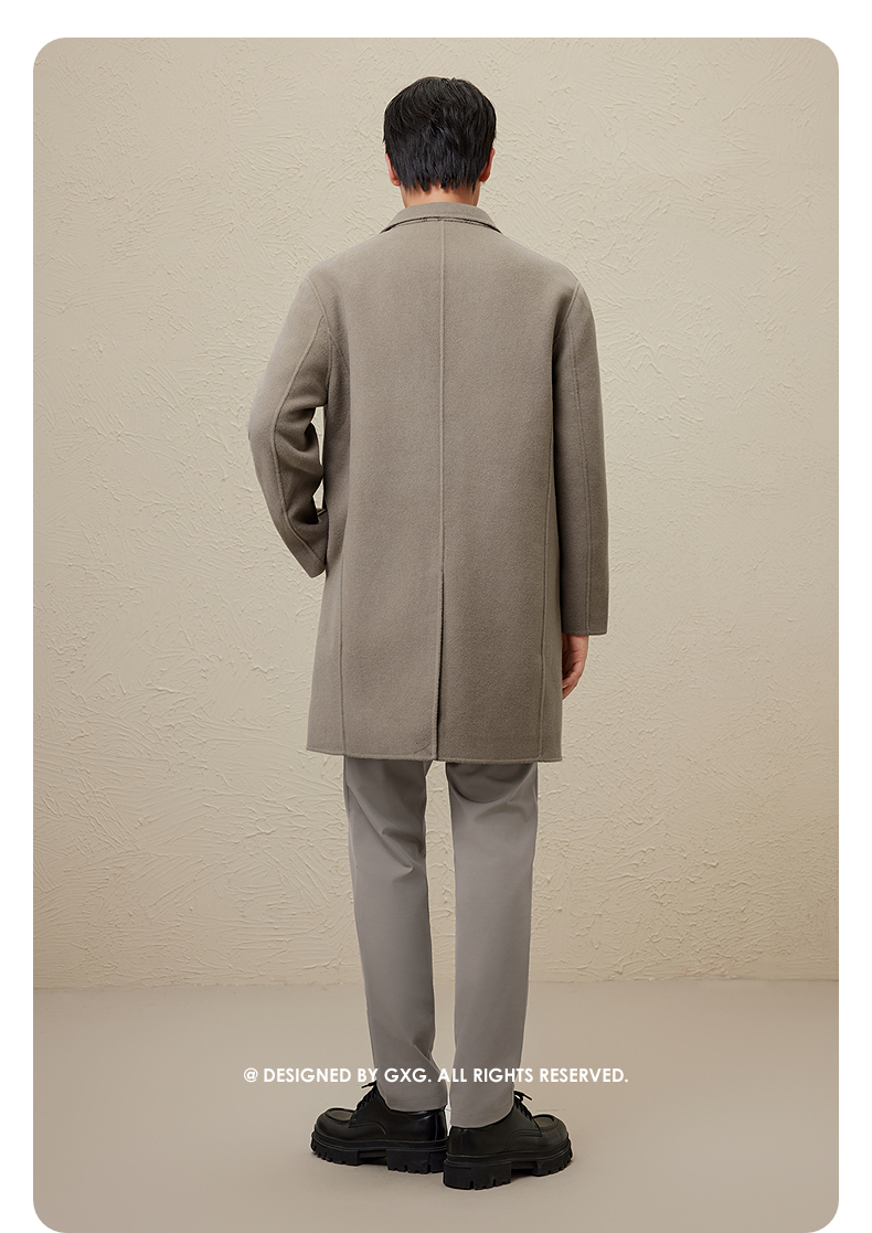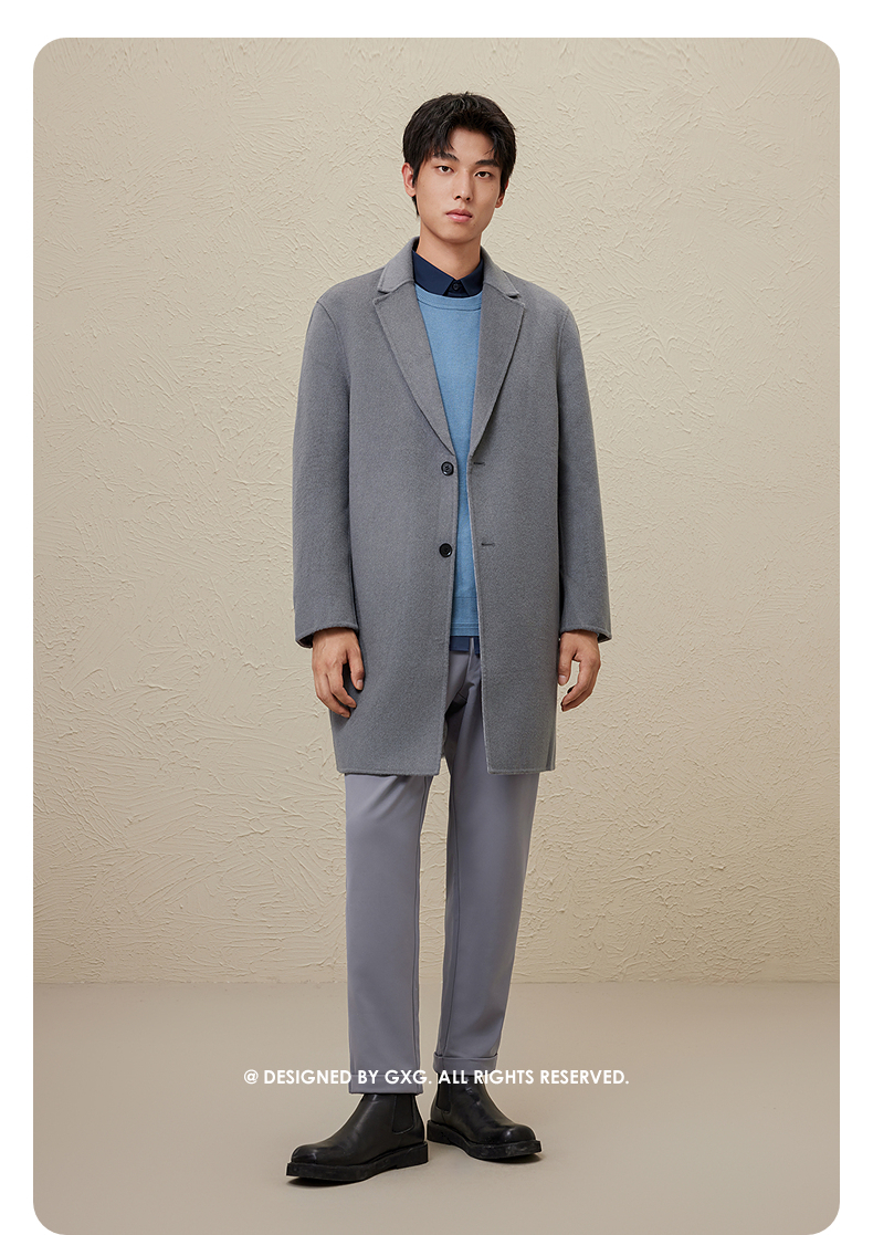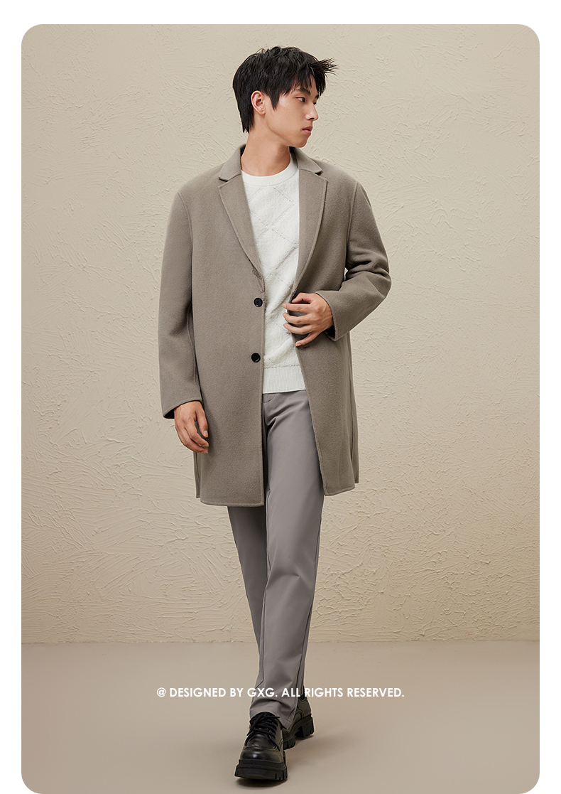 GXG男装 时尚翻领休闲简约好搭多色提花全羊毛长大衣 冬季热卖GEX12627104