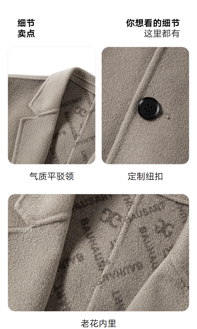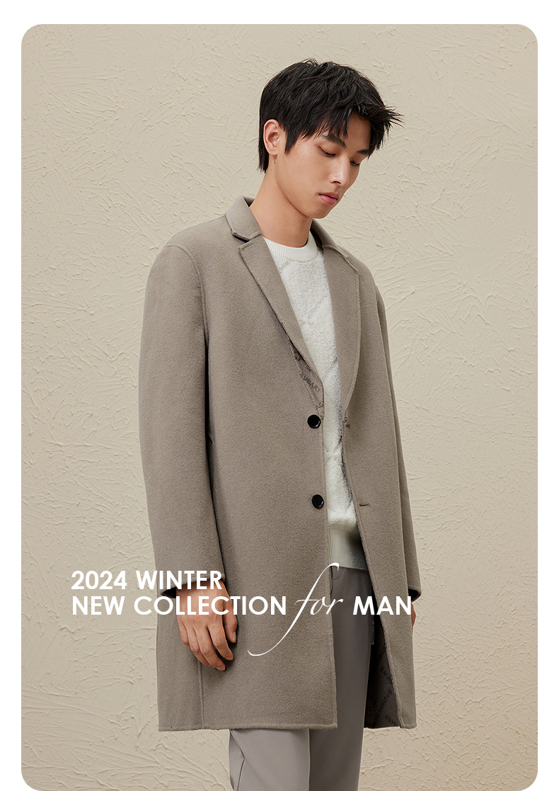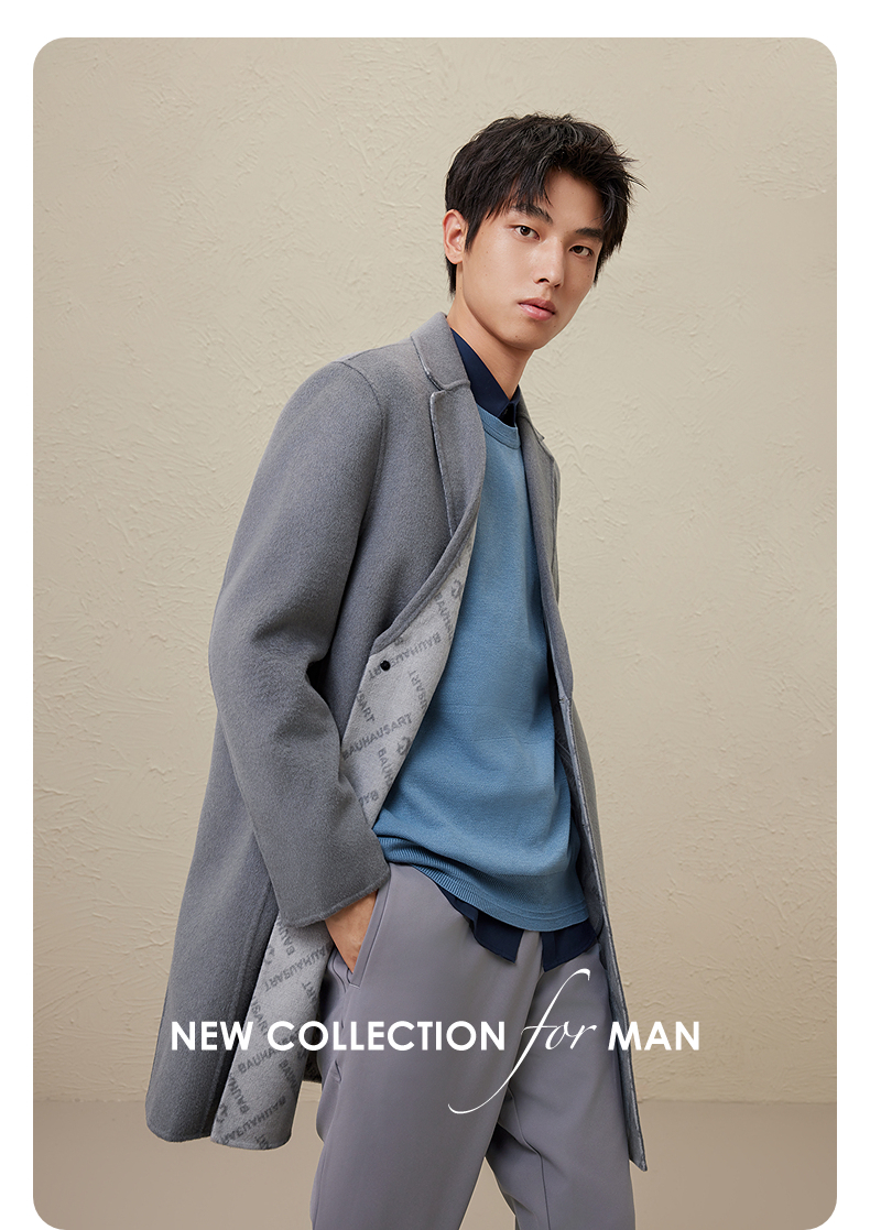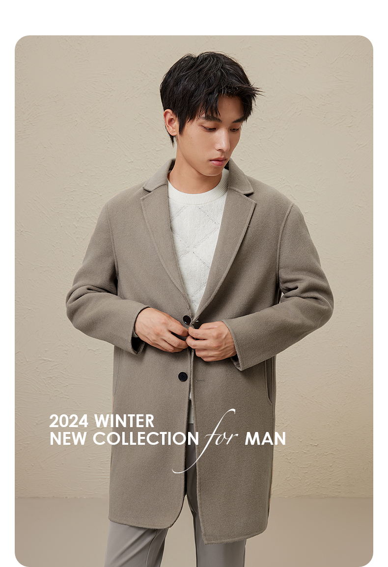GXG男装 时尚翻领休闲简约好搭多色提花全羊毛长大衣 冬季热卖GEX12627104