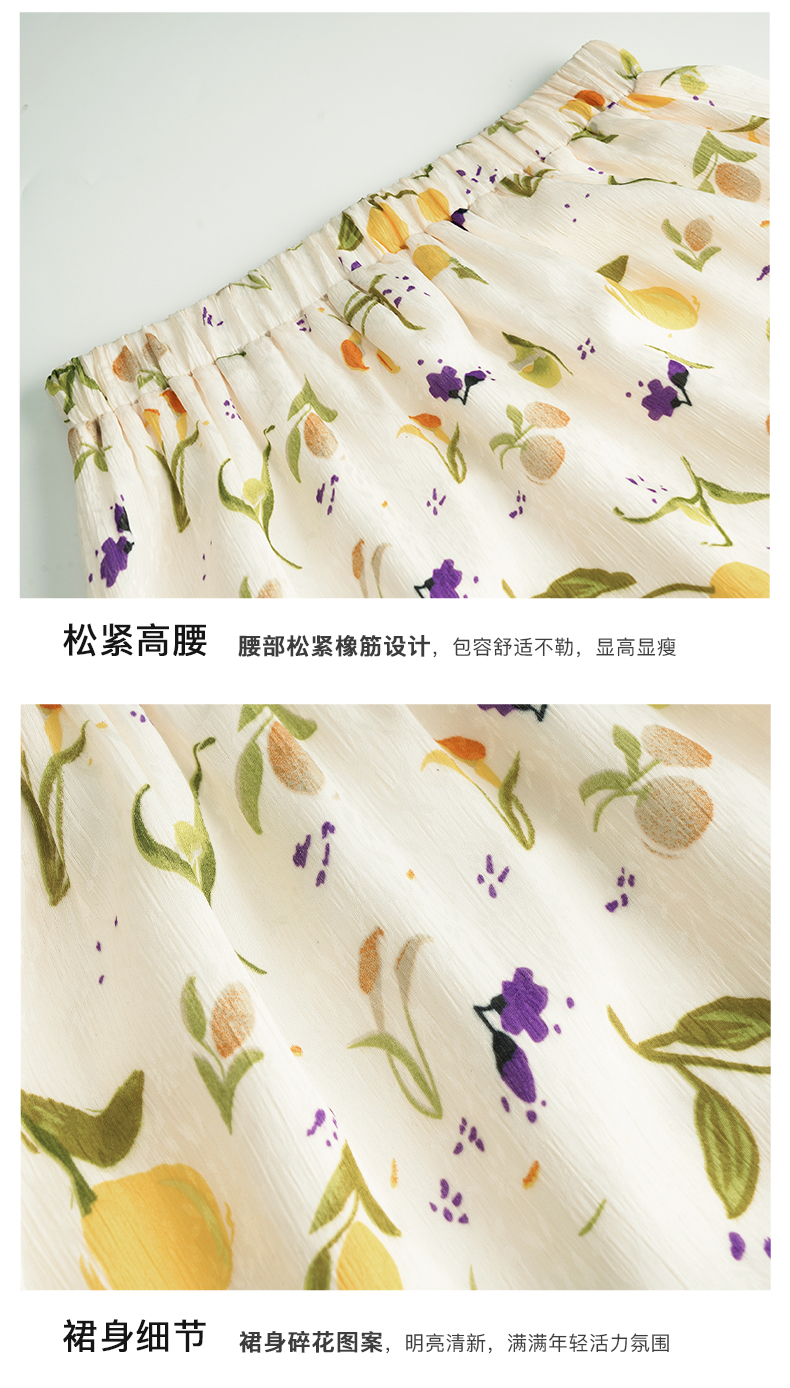 OLrain欧芮儿法式碎花半身裙女春季2023年新款高腰撞色A字伞摆裙