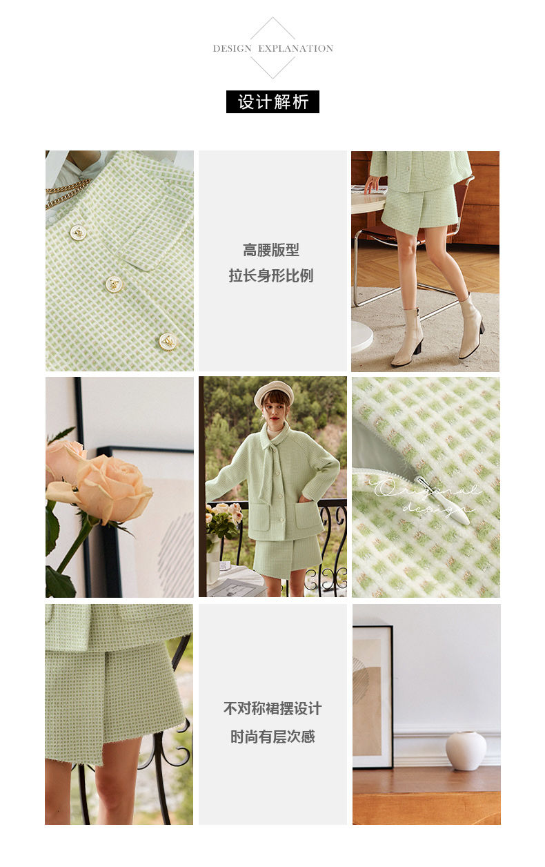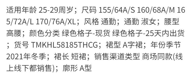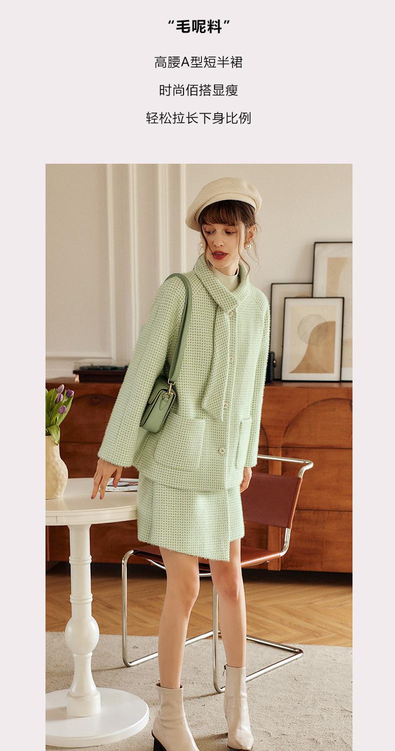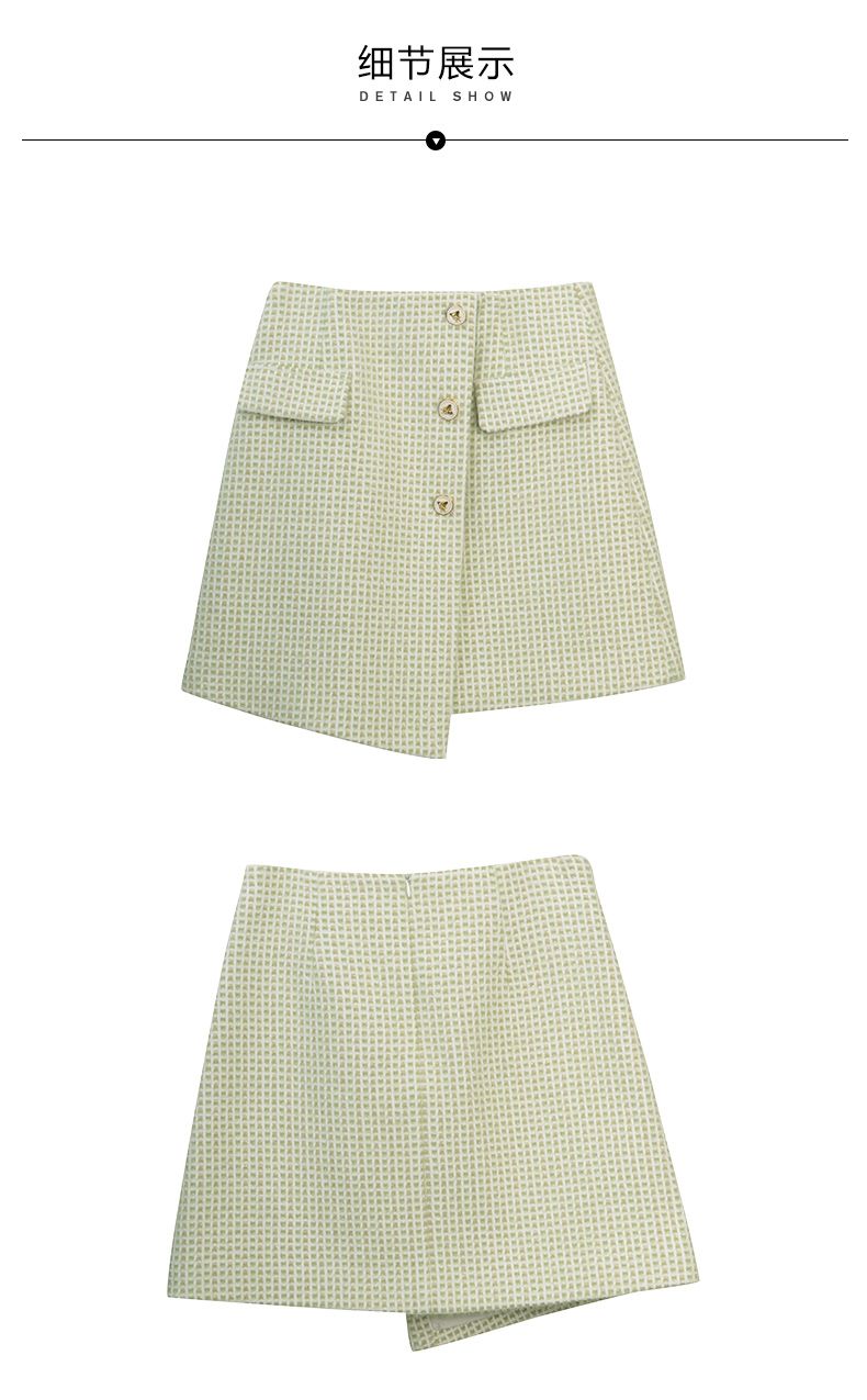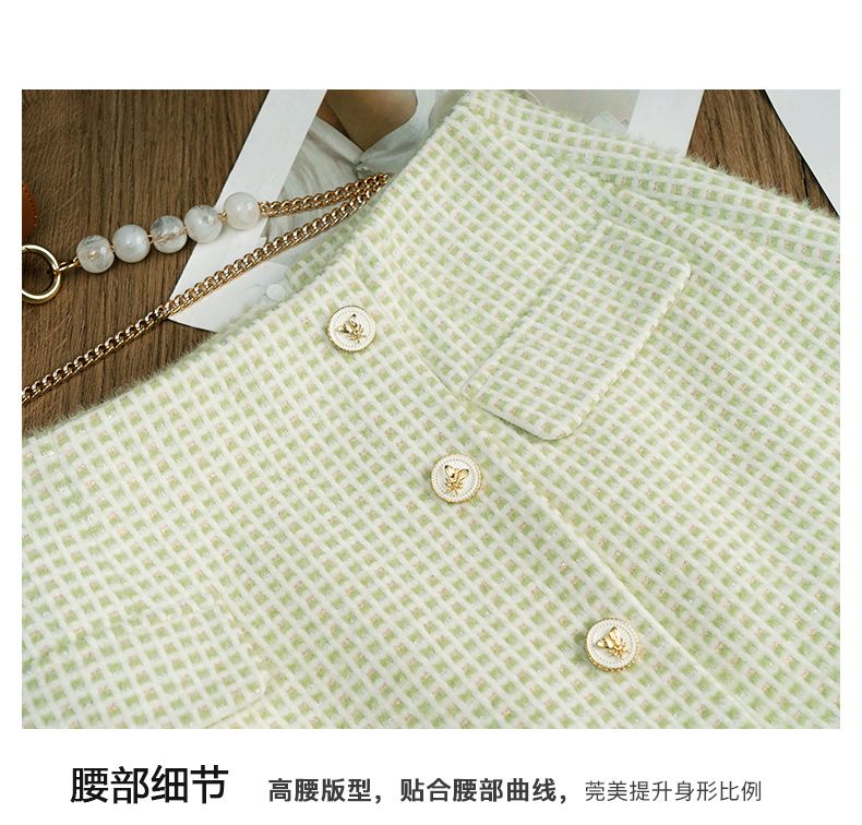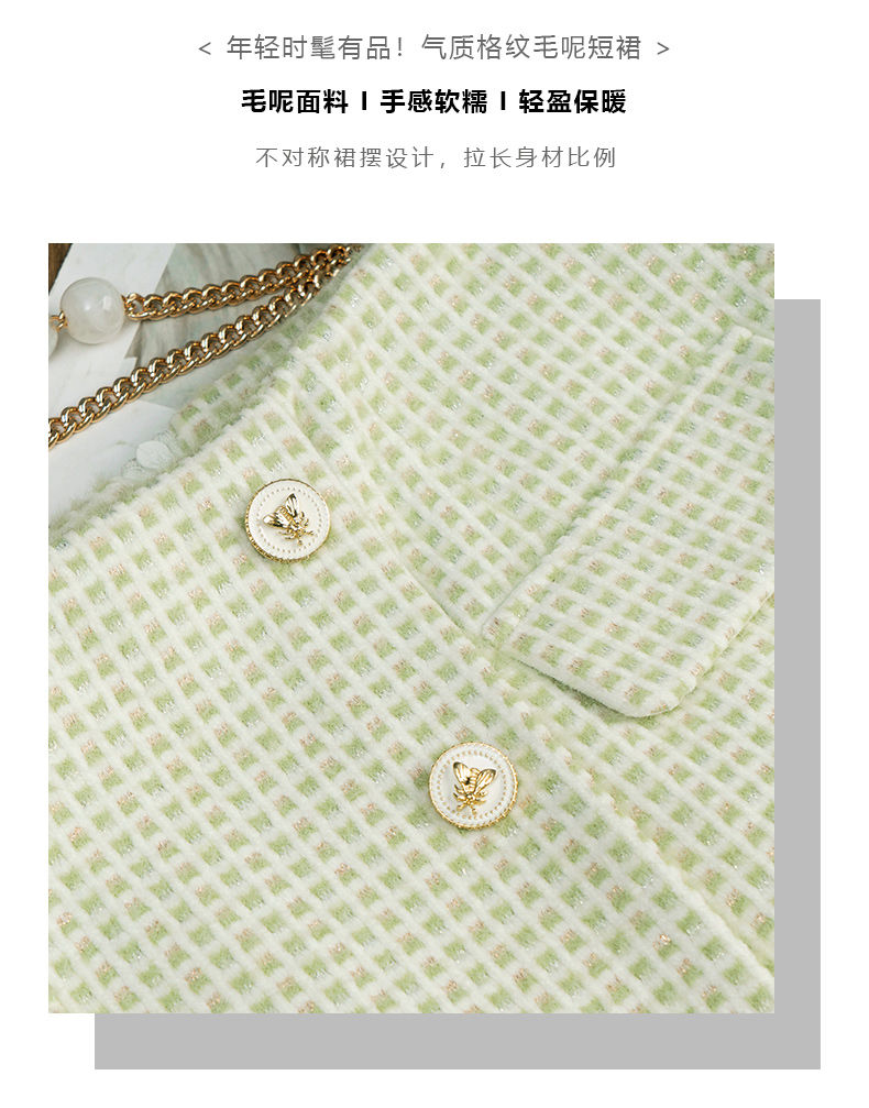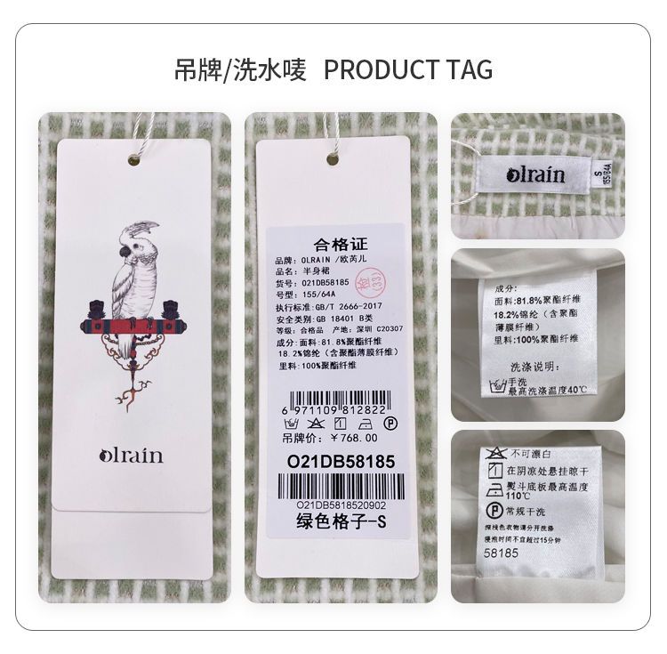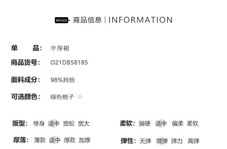 欧芮儿绿色格子半身裙女春装新款2025高腰显瘦气质复古不规则裙子